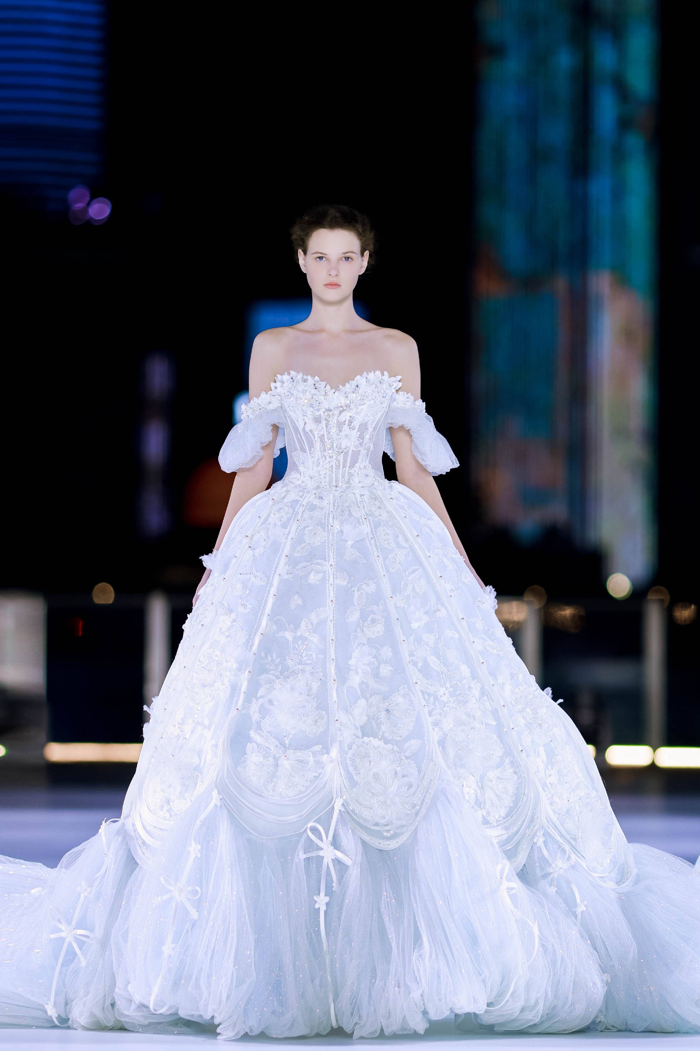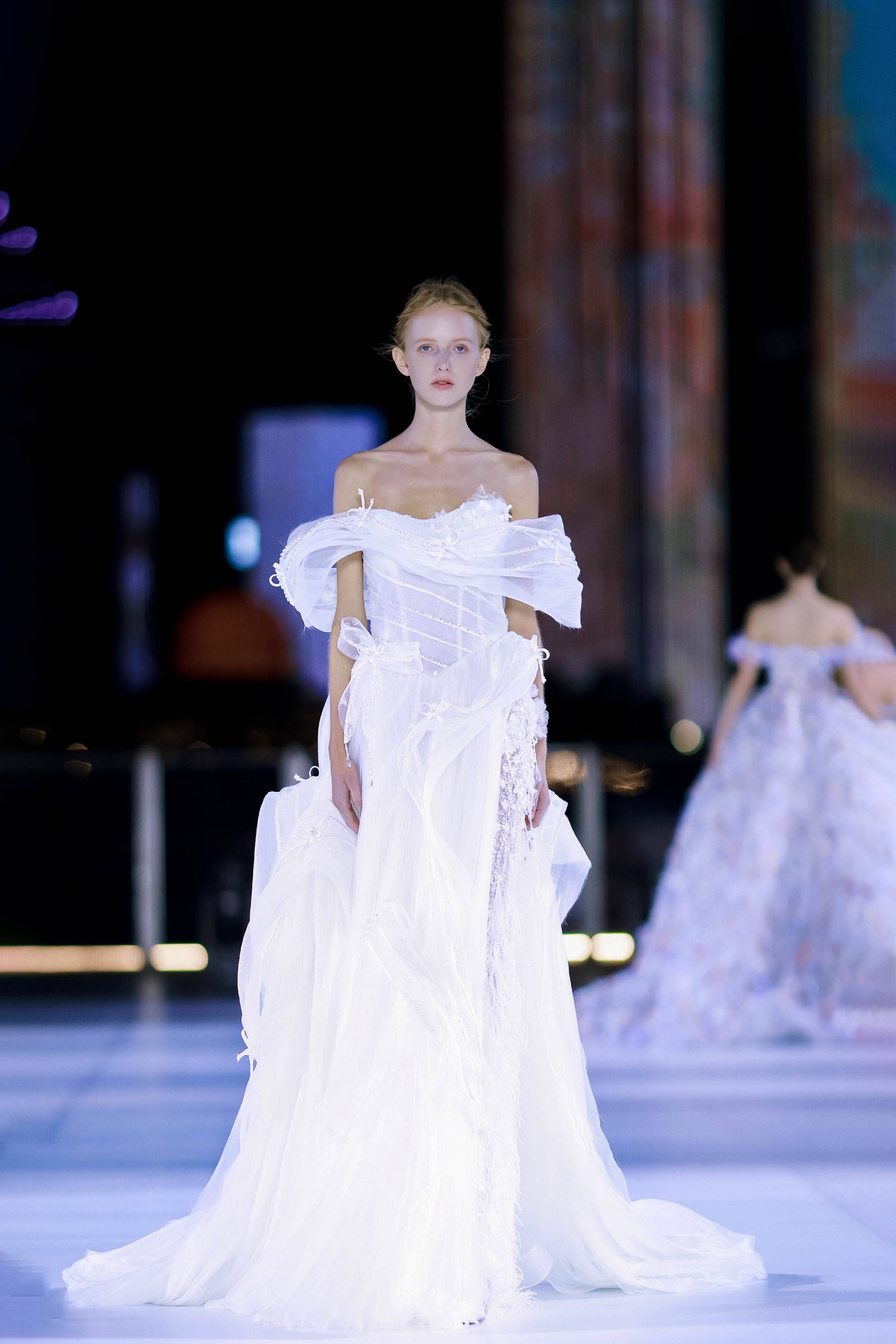 As the official opening show of the 2025 Qingdao International Fashion Week, the presentation delivered a spectacular beginning to this international celebration of blending world-class craftsmanship with an atmosphere of elegance and grandeur. This season, The Atelier proudly presents its newest theme, “Fleurs Crues Plumes”. The collection offers a poetic reimagining of nature’s mystique, seamlessly blending delicate feathers and florals into a dreamlike narrative of romance and imagination. Through visionary design and meticulous artistry, the collection explores a fantastical dialogue between fragility and strength, delicacy and freedom, offering brides a new expression of ethereal beauty. Each gown carries its own spirit, transforming couture into a bridge between past and present, reality and reverie.In its Spring/Summer 2026 bridal collection, The Atelier draws inspiration from feathers, soaring through a dreamlike sea of blossoms and the boundless skies of time. Entitled “Fleurs Crues Plumes”, the collection embodies a poetic interplay of fantasy and elegance. Each gown carries its own ethereal spirit, weaving together the delicate beauty of feathers and the romance of flowers. More than just couture, these creations serve as gateways to personal dreams, bridging past and present, and allowing each bride to embody a timeless union of memory and imagination.
