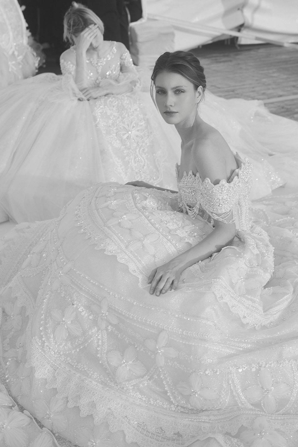 Roses bloom in full splendour, echoing the passion of life itself. Subtle clover motifs emerge, carrying wishes of luck and blessings. Lace flows like a gentle stream, intertwined with delicate butterfly embroidery, showcasing the elegance and softness of femininity in exquisite detail. With its exquisite craftsmanship, the collection captures the many facets of women, unfolding like a series of breathtaking paintings that preserve every captivating moment. Each bride wearing a gown from this collection is invited to shine on her most important day, radiating a bridal beauty that is pure, natural, romantic, and enchantingly timeless.