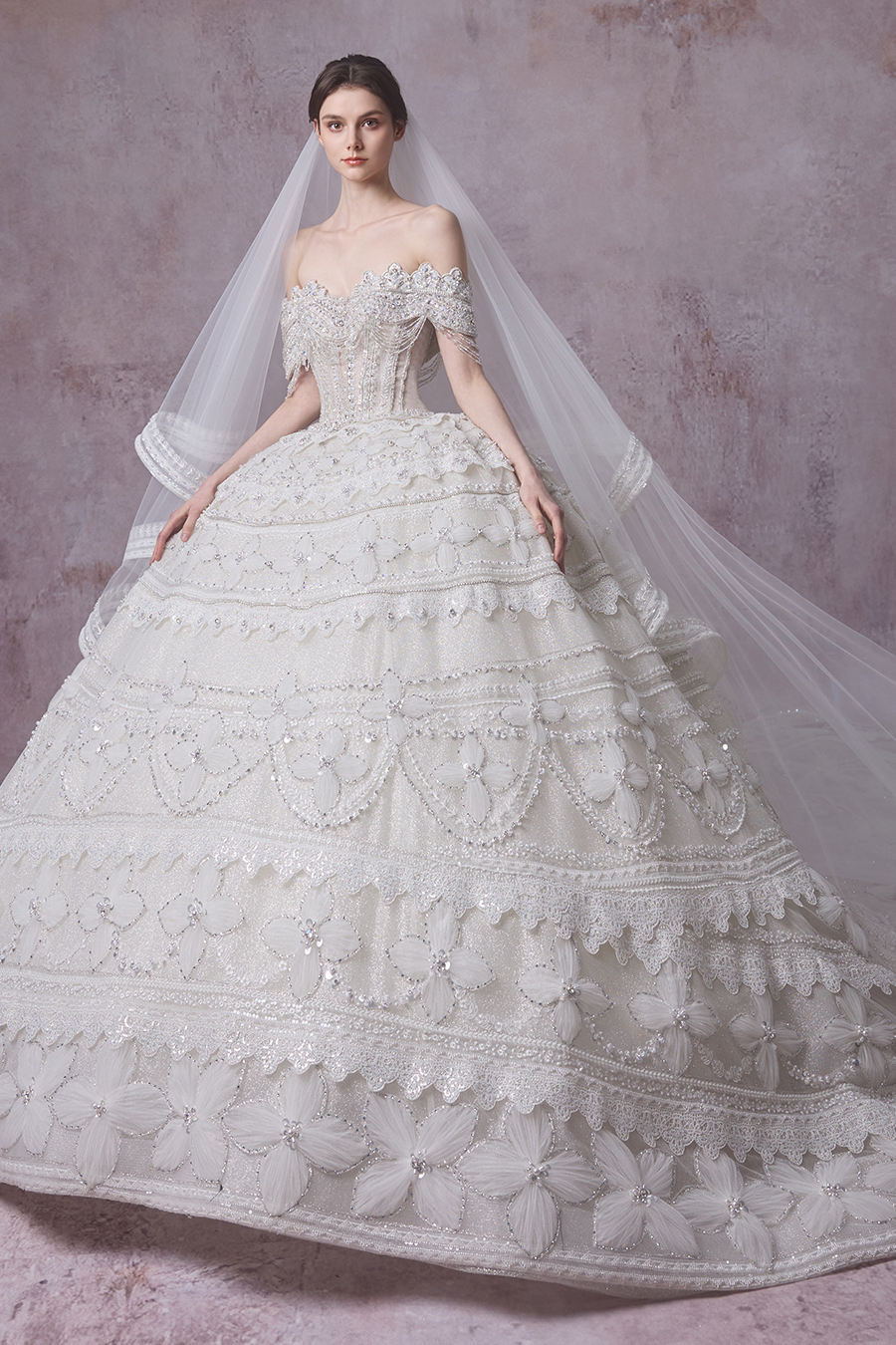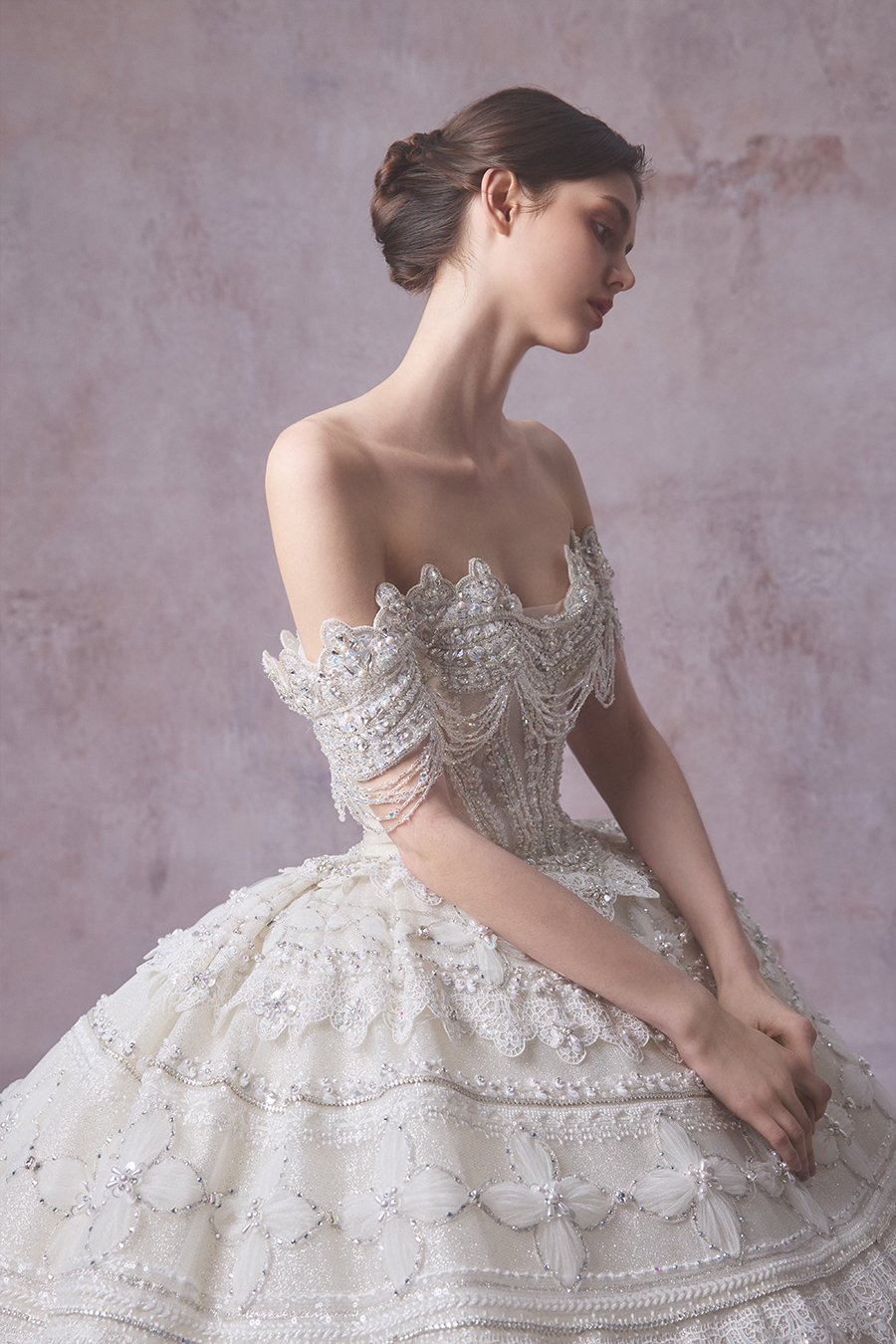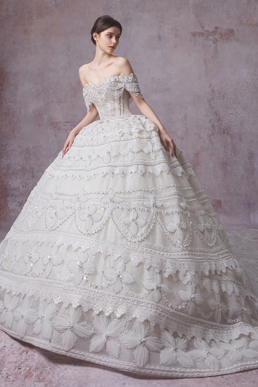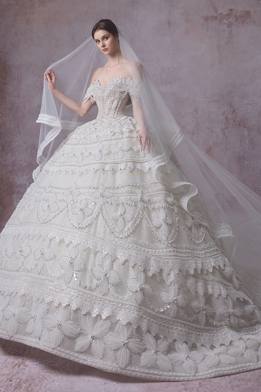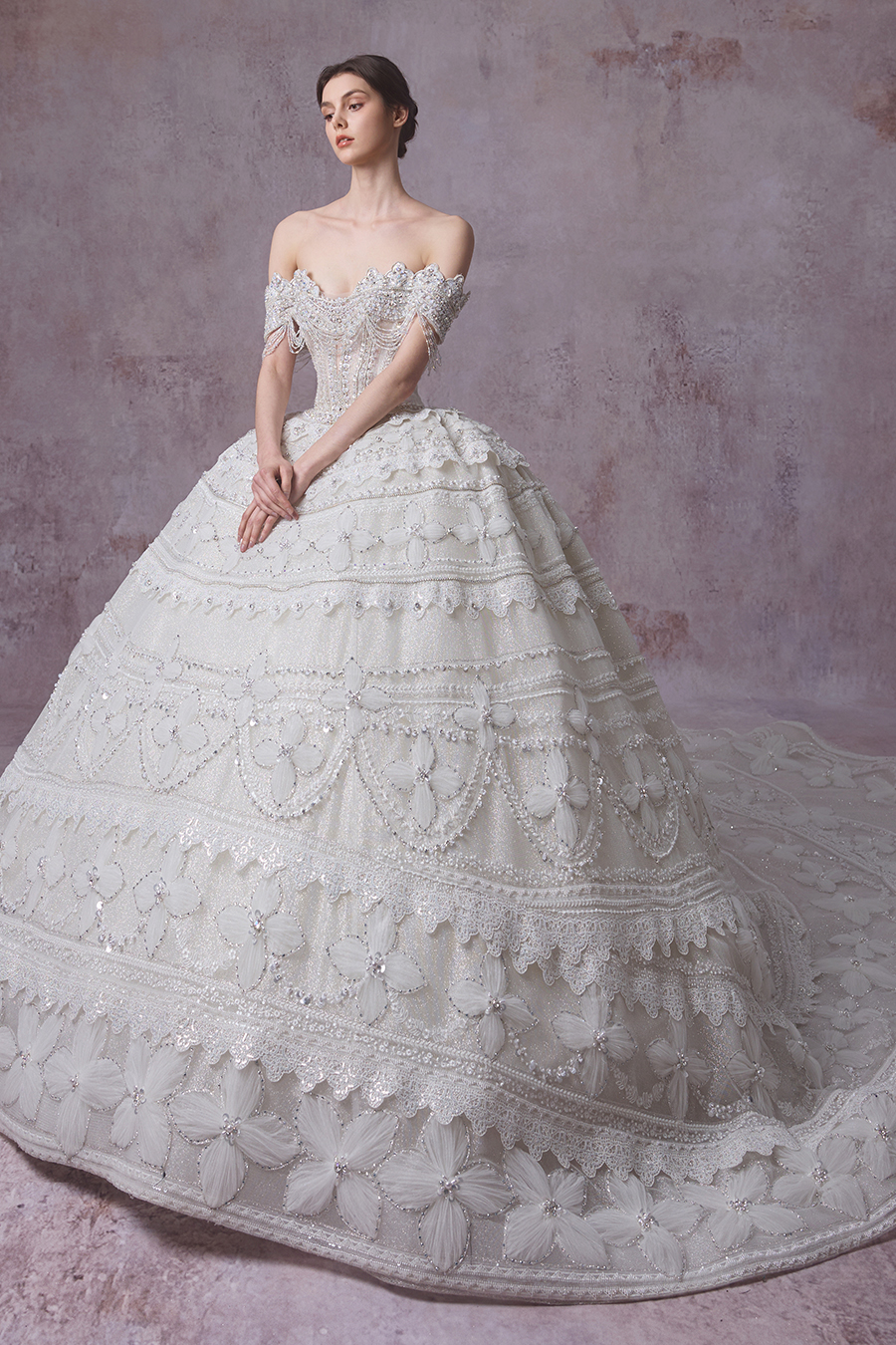 Please Note:Prices are for reference only and may vary depending on order details and boutique location. Our couture bridal and evening gowns are custom-made and typically require 4 to 6 months for production. To place an order, or for rental services and further assistance, please contact your preferred boutique.