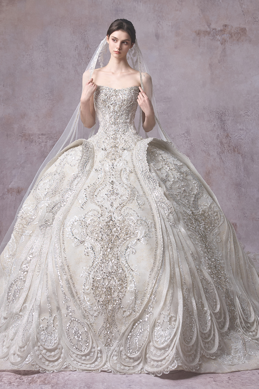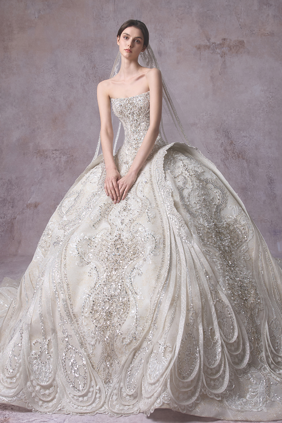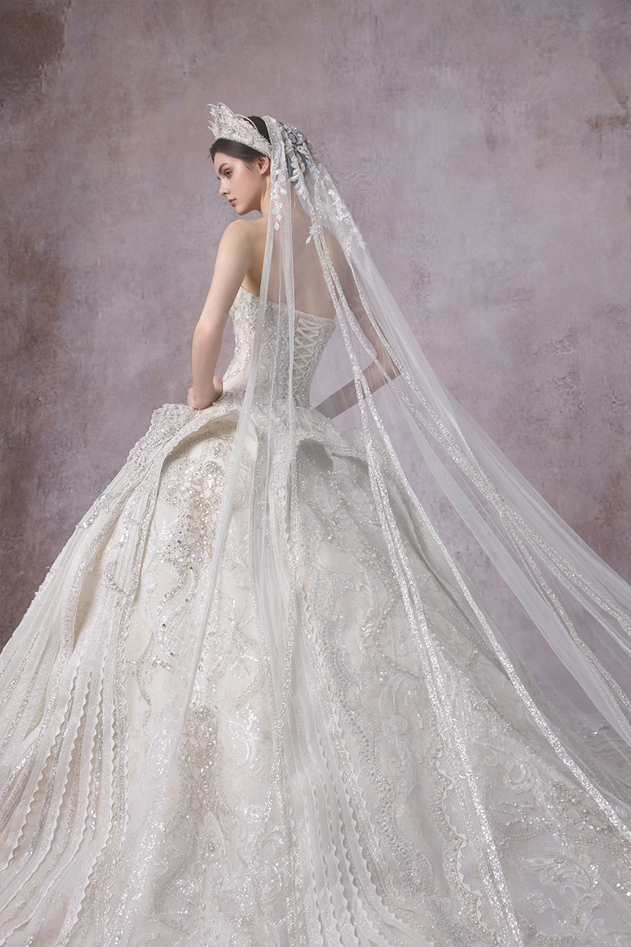 Please Note:Prices are for reference only and may vary depending on order details and boutique location. Our couture bridal and evening gowns are custom-made and typically require 4 to 6 months for production. To place an order, or for rental services and further assistance, please contact your preferred boutique.