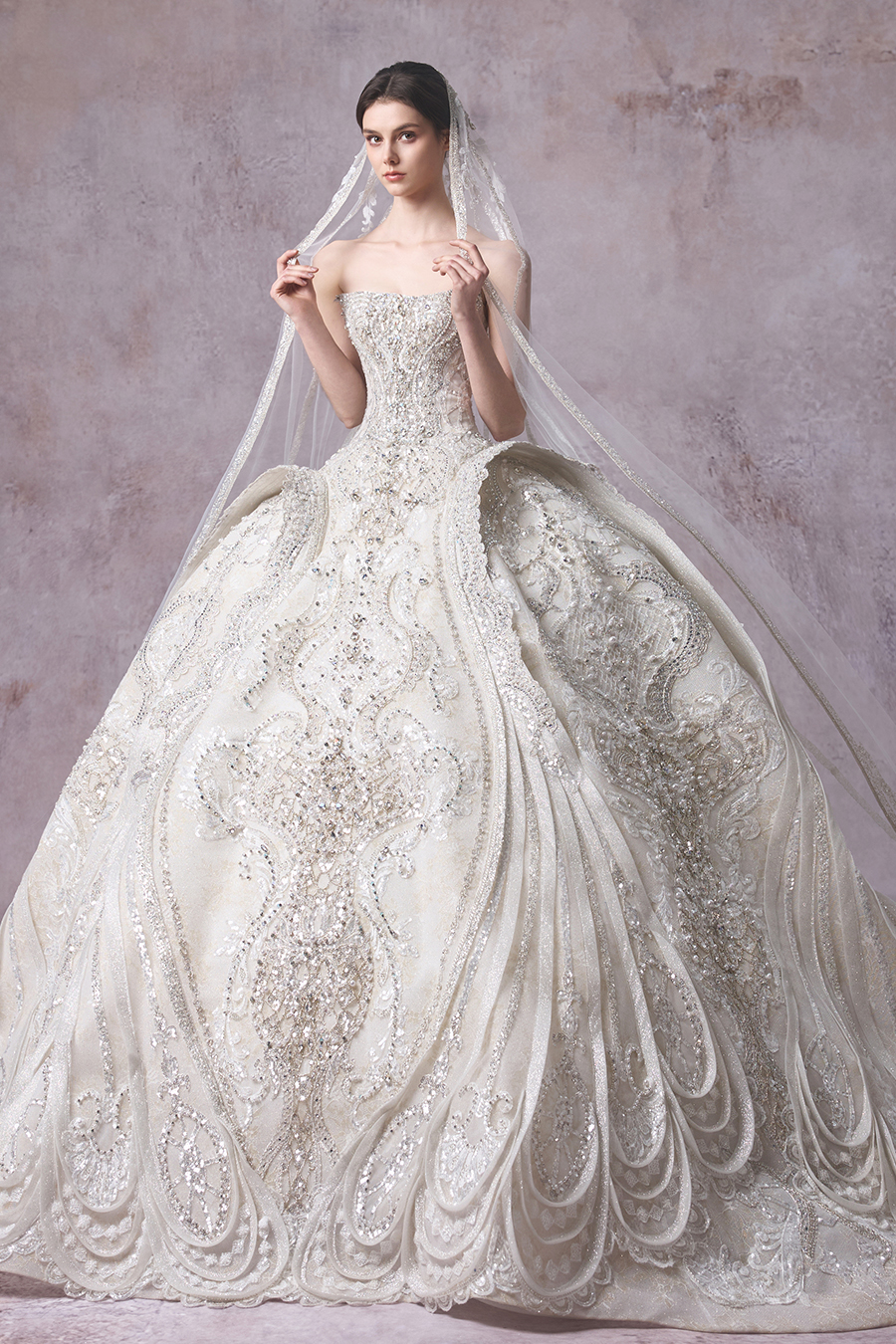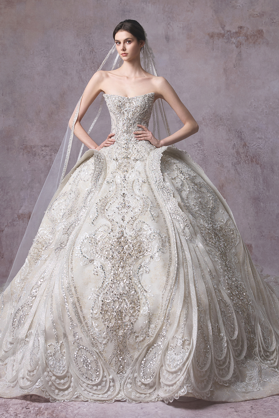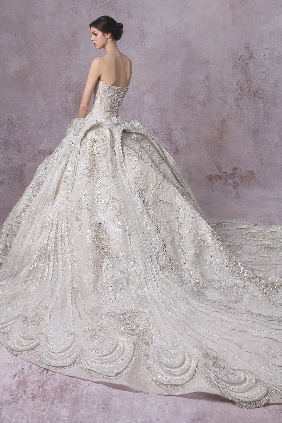 Please Note:Prices are for reference only and may vary depending on order details and boutique location. Our couture bridal and evening gowns are custom-made and typically require 4 to 6 months for production. To place an order, or for rental services and further assistance, please contact your preferred boutique.