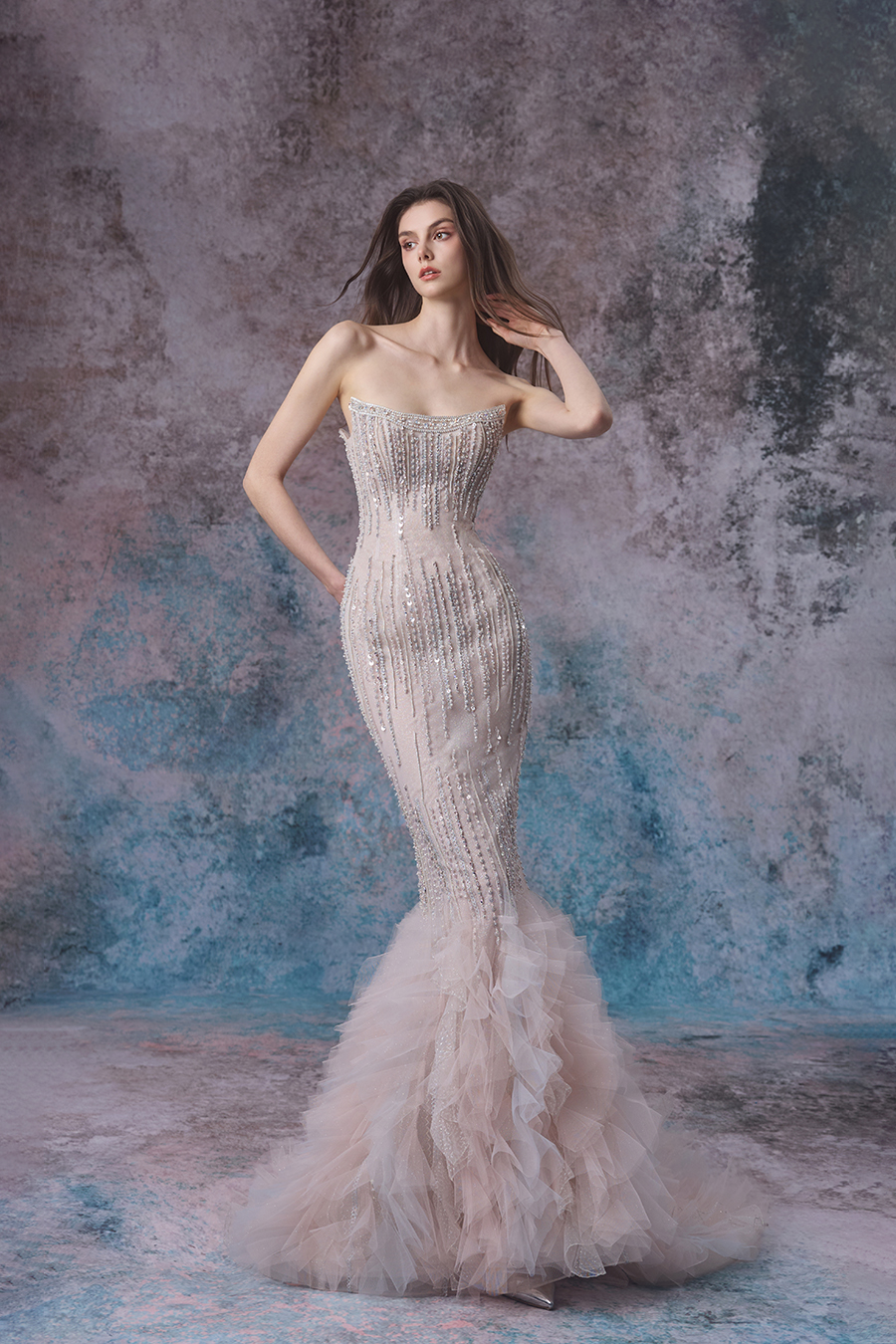 Please Note:Prices are for reference only and may vary depending on order details and boutique location. Our couture bridal and evening gowns are custom-made and typically require 4 to 6 months for production. To place an order, or for rental services and further assistance, please contact your preferred boutique.