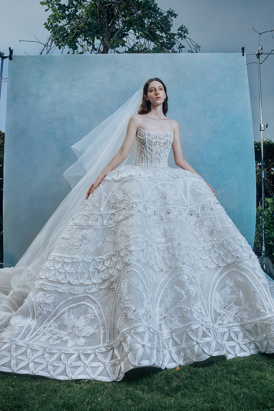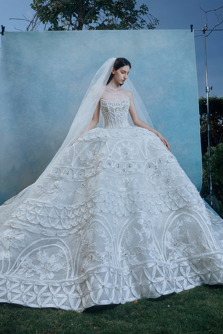 Please Note:Prices are for reference only and may vary depending on order details and boutique location. Our couture bridal and evening gowns are custom-made and typically require 4 to 6 months for production. To place an order, or for rental services and further assistance, please contact your preferred boutique.