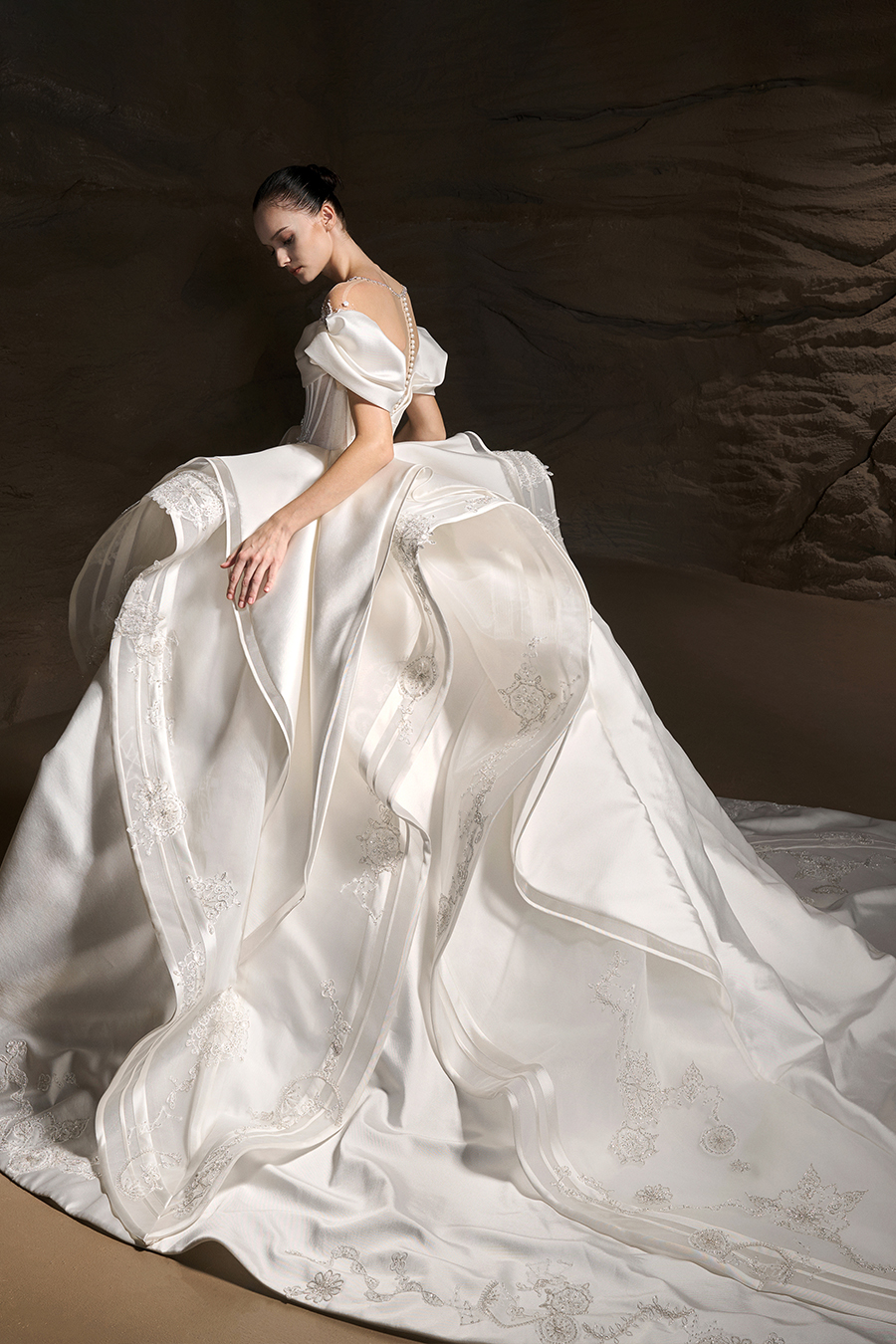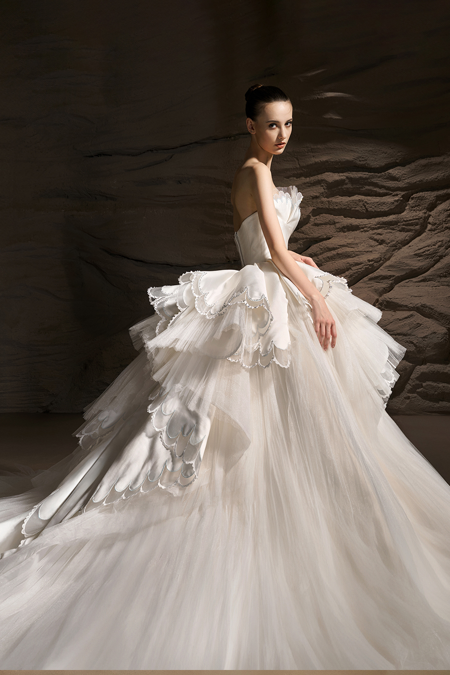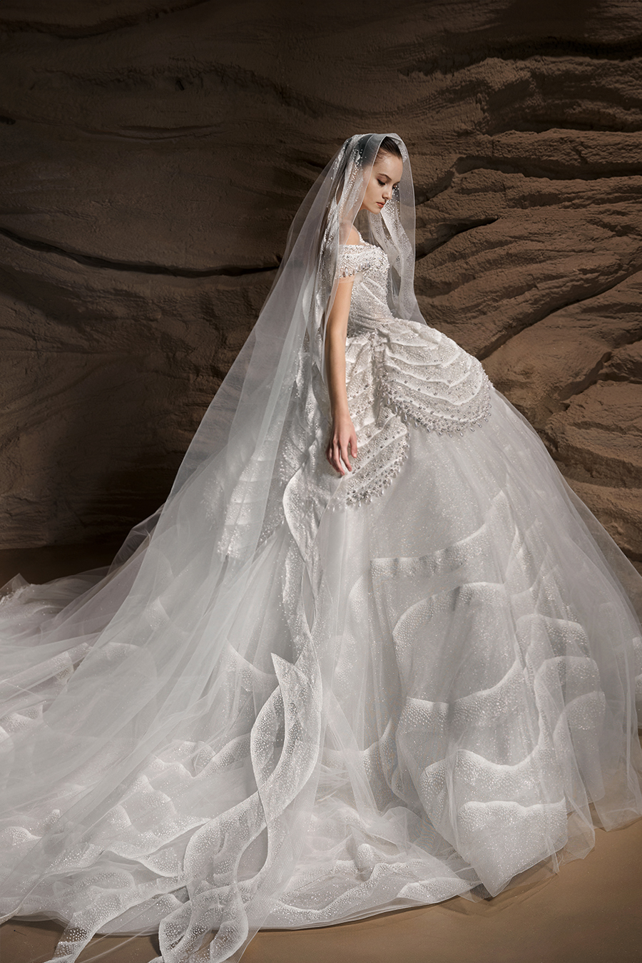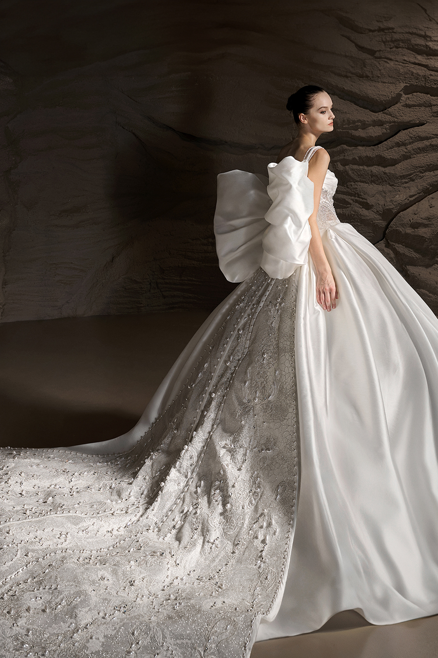 Land of Dreams: a magical journey of love and dreams. The most romantic and purest moments in a love story, ‘Land of Dreams’ is like a voyage of the soul, where everyone has their own Fairytale world. Each piece within the Land of Dreams Collection explores and breaks the boundaries between tradition and modernity, reality and fantasy. The designers were inspired by the dreams, the use of a rich fabric texture and materials where these abstract concepts are visualised through exquisite craftsmanship. The Atelier's pursuit of the utmost in attention to the details is evident in both the vintage elegance of the royal long trains and the contemporary silhouettes that are clean and smooth. In particular, the delicate embroideries, three-dimensional pleats, brilliant hot-fix rhinestones and the exquisite beadwork are a reflection of the brand's craftsmanship. The stories behind each bridal gown contained a story of love and dreams, encouraging every bride to bravely pursue herself and unleash the infinite possibilities within.