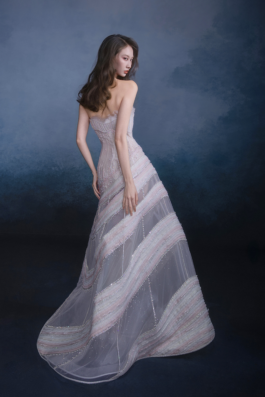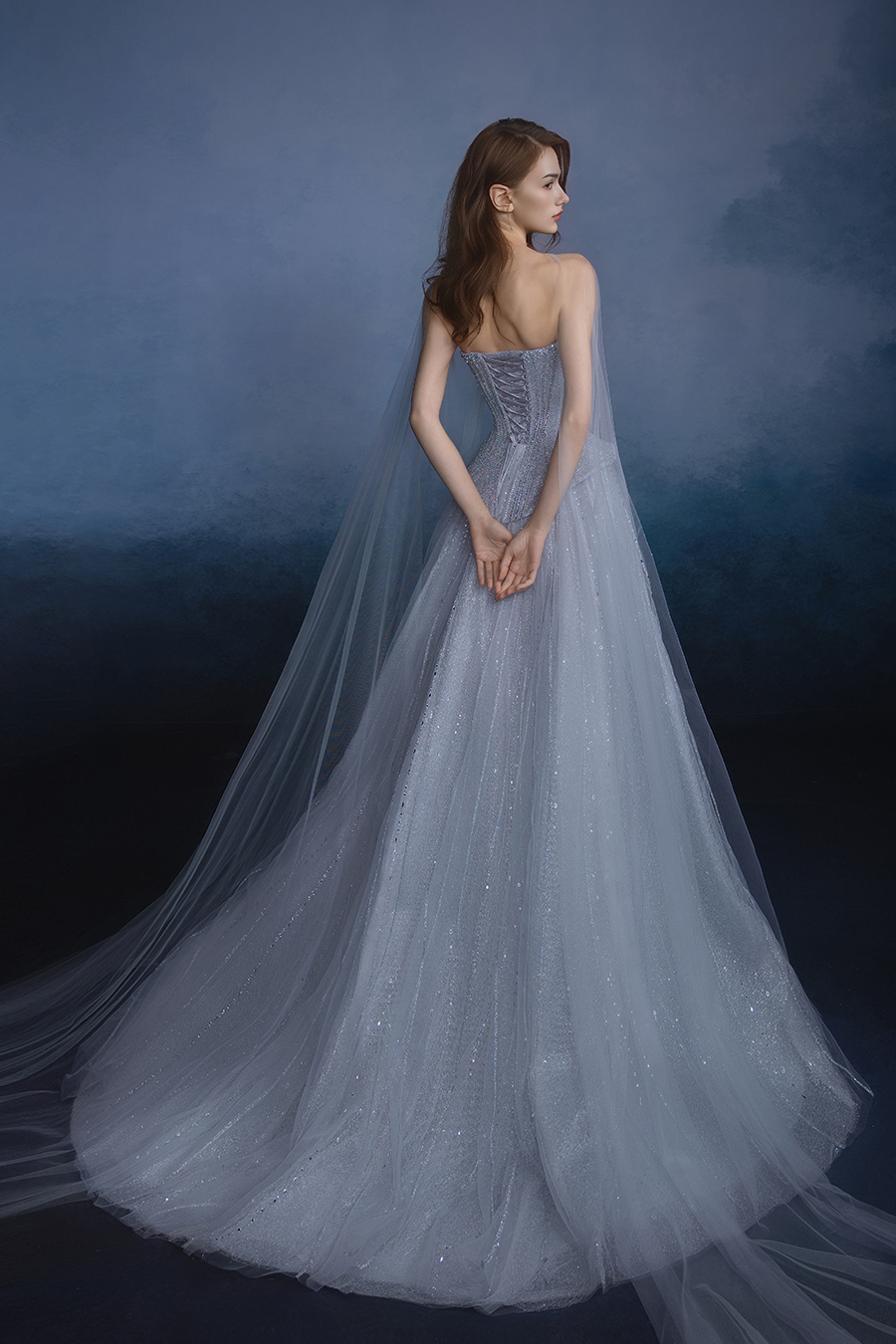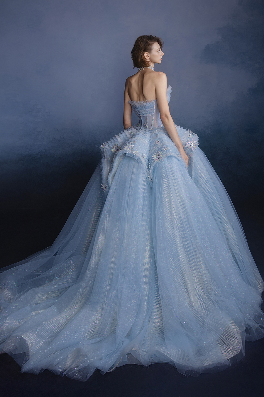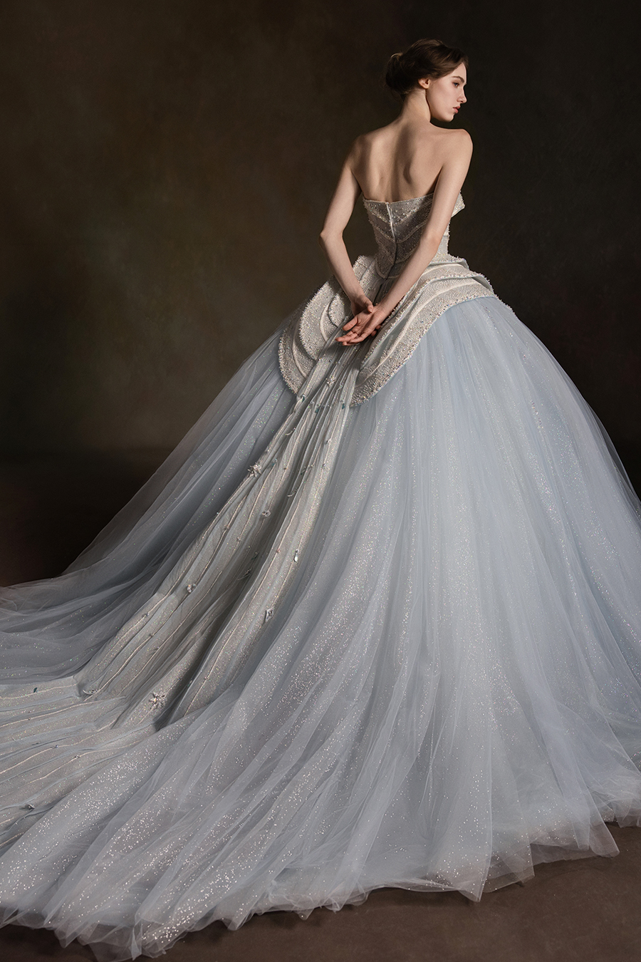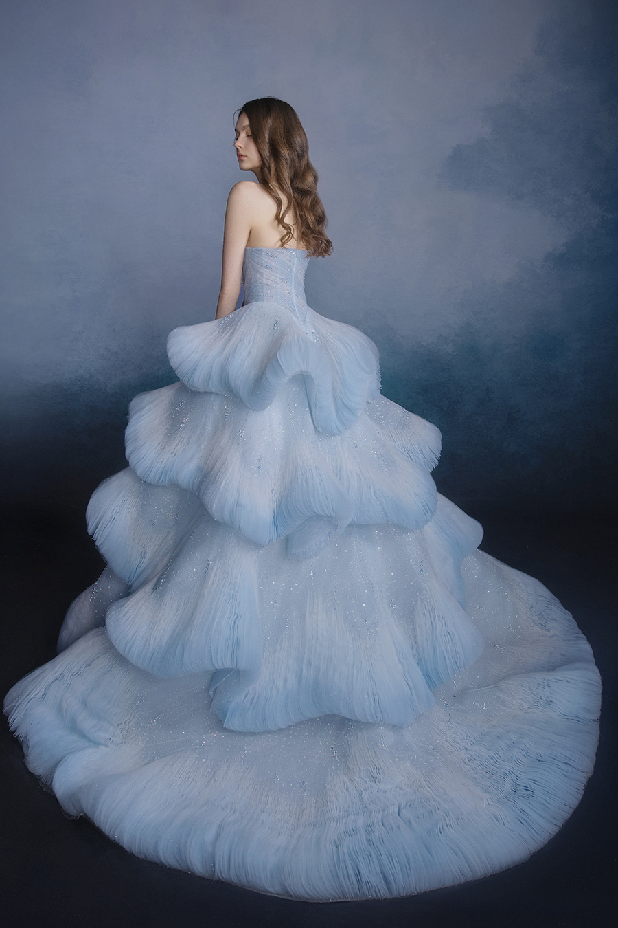The brilliance of the stars falls from distant light years, unfolding like a swirling scroll, as time and space are immersed ingentle mystery. A light touch of the fingertips makes the stars twinkle, the Milky Way pours down, overflowing withromance. Every ray of light is a whisper from the stars, guiding us to encounter the breathtaking fusion of the universe,dreams, and romance, where we feel the real and profound allure of the starry sky.The Bridal By The Atelier 2025 Fall/Winter collection draws inspiration from the grandeur of Russian architecture and the dreamlike intertwining of stars. As the aurora described by Leo Tolstoy sweeps across the Neva River, the artisans are stitching this celestial phenomenon into the texture of the wedding gown. They skilfully capture the whispers of the galaxy,using fabric as a medium to replicate the beauty of celestial bodies, creating a dreamlike gown that dances with the stars.A variety of figurative decorative patterns are woven throughout the collection’s designs, such as “lightly drifting in the direction of star trails” and “ancient Russian architecture.” The designer skilfully employs techniques like pintucking, rhinestone application, pleating, and machine embroidery, deconstructing and recombining these elements to create magical artistic effects. Ice-blue aurora rhinestones and scattered star-like beadwork add a dazzling brilliance. Each gown is crafted with exceptional artistry, transforming the bride into the dreamy protagonist of the starry sky, radiating unique romance and embodying The Atelier’s signature celestial romanticism.roll, as time and space are immersed in gentle mystery. A light touch of the fingertips makes the stars twinkle, the Milky Way pours down, overflowing with romance. Every ray of light is a whisper from the stars, guiding us to encounter the breathtaking fusion of the universe, dreams, and romance, where we feel the real and profound allure of the starry sky