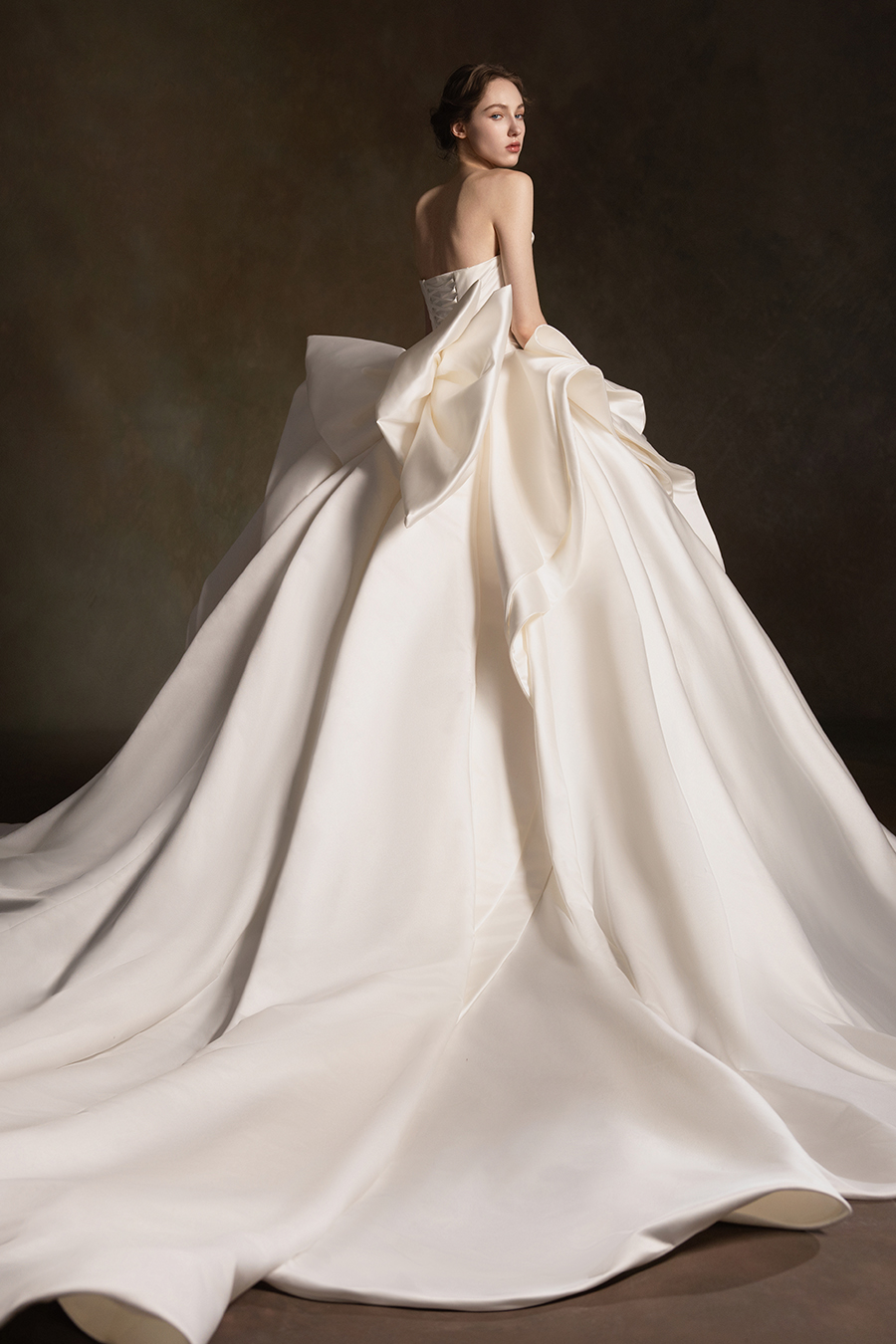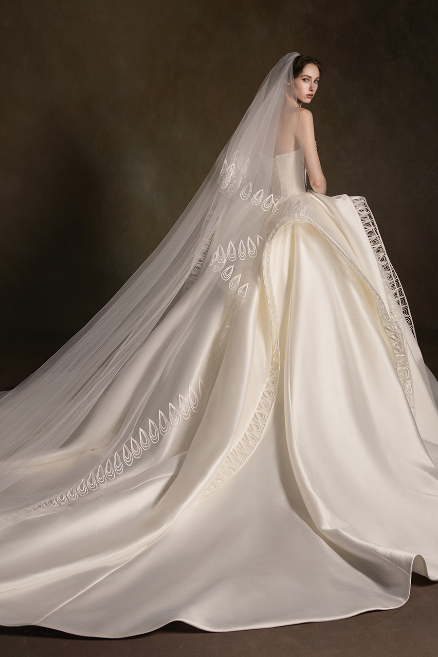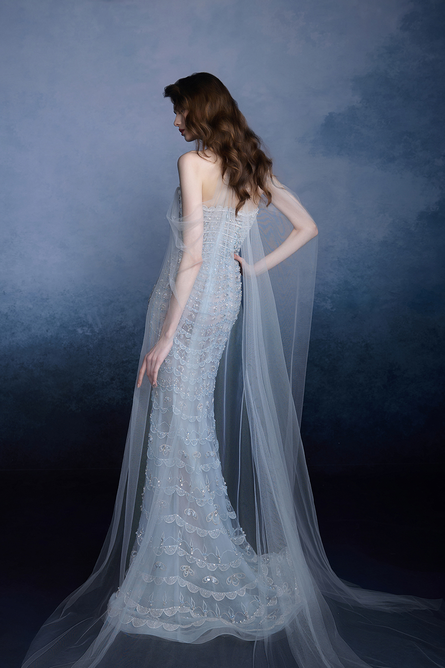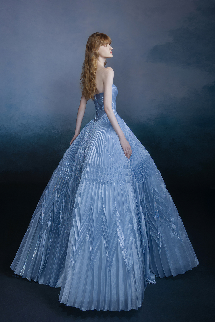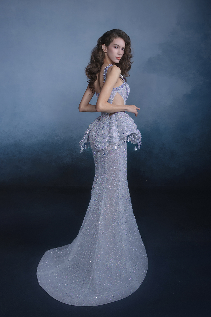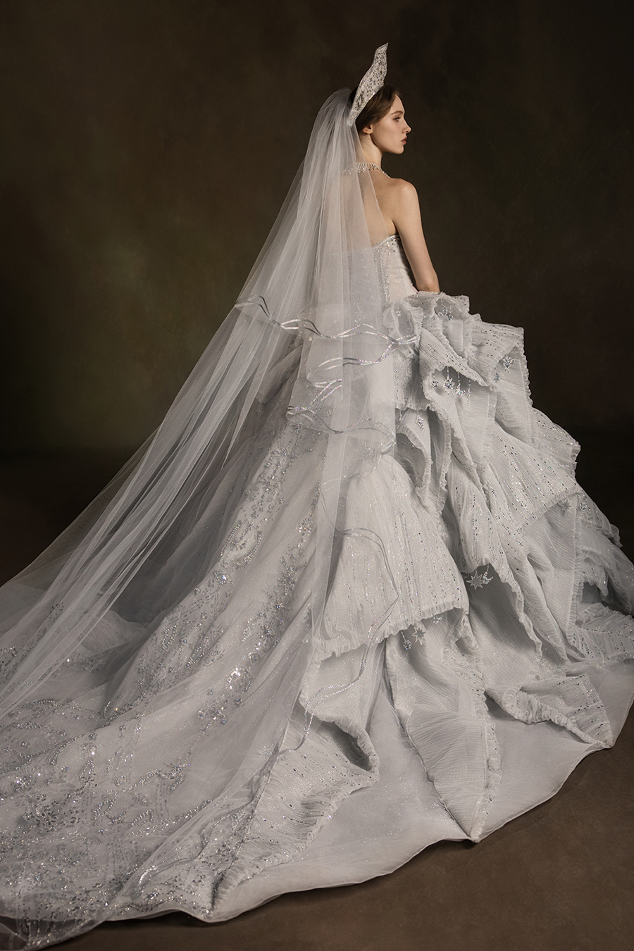 The brilliance of the stars falls from distant light years, unfolding like a swirling scroll, as time and space are immersed ingentle mystery. A light touch of the fingertips makes the stars twinkle, the Milky Way pours down, overflowing withromance. Every ray of light is a whisper from the stars, guiding us to encounter the breathtaking fusion of the universe,dreams, and romance, where we feel the real and profound allure of the starry sky.The Bridal By The Atelier 2025 Fall/Winter collection draws inspiration from the grandeur of Russian architecture and the dreamlike intertwining of stars. As the aurora described by Leo Tolstoy sweeps across the Neva River, the artisans are stitching this celestial phenomenon into the texture of the wedding gown. They skilfully capture the whispers of the galaxy,using fabric as a medium to replicate the beauty of celestial bodies, creating a dreamlike gown that dances with the stars.A variety of figurative decorative patterns are woven throughout the collection’s designs, such as “lightly drifting in the direction of star trails” and “ancient Russian architecture.” The designer skilfully employs techniques like pintucking, rhinestone application, pleating, and machine embroidery, deconstructing and recombining these elements to create magical artistic effects. Ice-blue aurora rhinestones and scattered star-like beadwork add a dazzling brilliance. Each gown is crafted with exceptional artistry, transforming the bride into the dreamy protagonist of the starry sky, radiating unique romance and embodying The Atelier’s signature celestial romanticism.roll, as time and space are immersed in gentle mystery. A light touch of the fingertips makes the stars twinkle, the Milky Way pours down, overflowing with romance. Every ray of light is a whisper from the stars, guiding us to encounter the breathtaking fusion of the universe, dreams, and romance, where we feel the real and profound allure of the starry sky