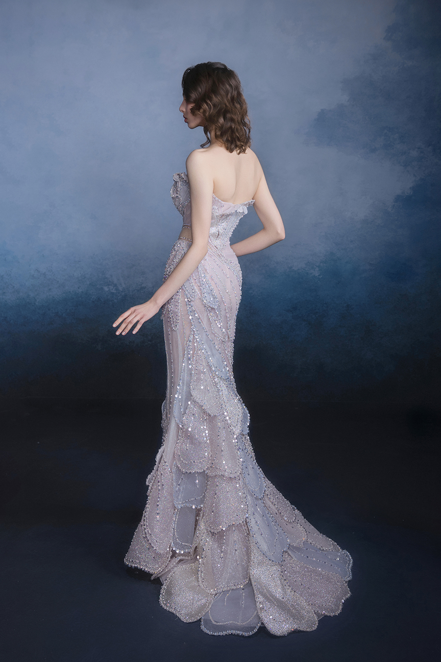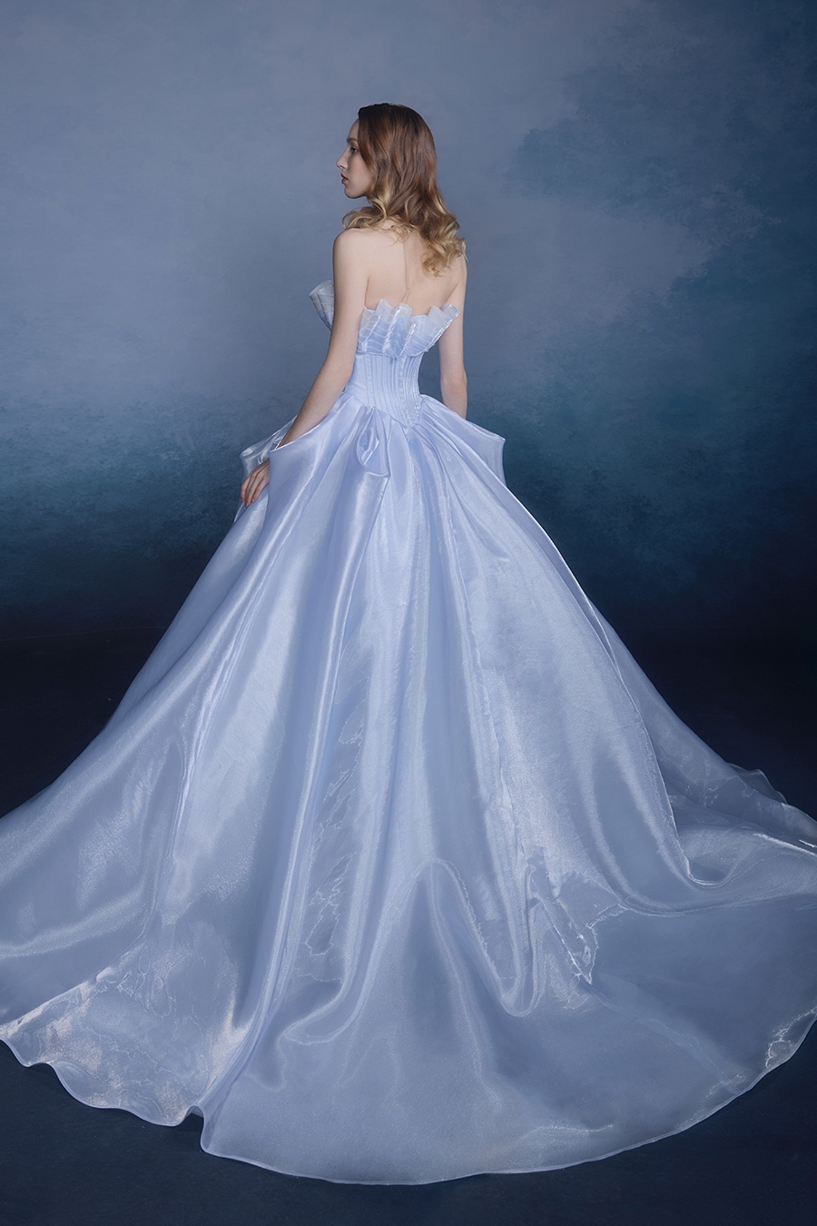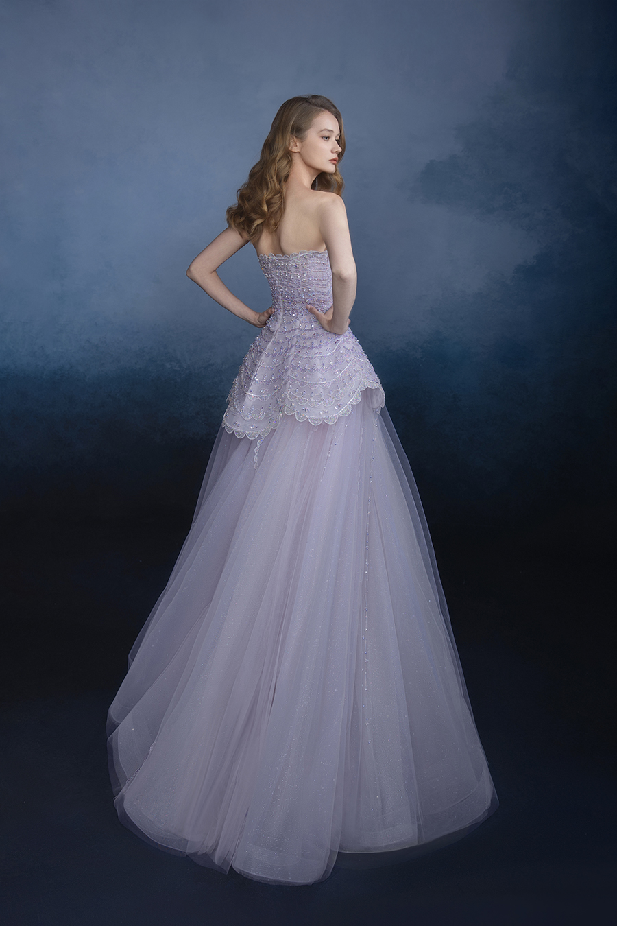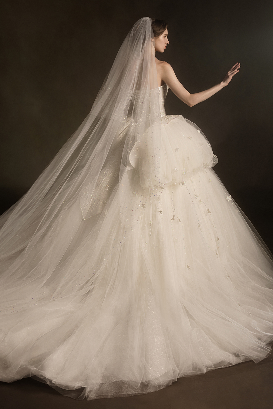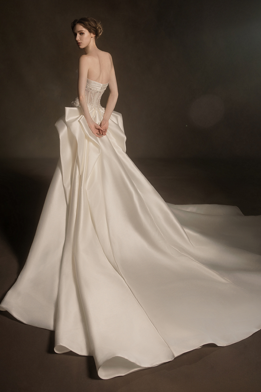 The brilliance of the stars falls from distant light years, unfolding like a swirling scroll, as time and space are immersed ingentle mystery. A light touch of the fingertips makes the stars twinkle, the Milky Way pours down, overflowing withromance. Every ray of light is a whisper from the stars, guiding us to encounter the breathtaking fusion of the universe,dreams, and romance, where we feel the real and profound allure of the starry sky.The Bridal By The Atelier 2025 Fall/Winter collection draws inspiration from the grandeur of Russian architecture and the dreamlike intertwining of stars. As the aurora described by Leo Tolstoy sweeps across the Neva River, the artisans are stitching this celestial phenomenon into the texture of the wedding gown. They skilfully capture the whispers of the galaxy,using fabric as a medium to replicate the beauty of celestial bodies, creating a dreamlike gown that dances with the stars.A variety of figurative decorative patterns are woven throughout the collection’s designs, such as “lightly drifting in the direction of star trails” and “ancient Russian architecture.” The designer skilfully employs techniques like pintucking, rhinestone application, pleating, and machine embroidery, deconstructing and recombining these elements to create magical artistic effects. Ice-blue aurora rhinestones and scattered star-like beadwork add a dazzling brilliance. Each gown is crafted with exceptional artistry, transforming the bride into the dreamy protagonist of the starry sky, radiating unique romance and embodying The Atelier’s signature celestial romanticism.roll, as time and space are immersed in gentle mystery. A light touch of the fingertips makes the stars twinkle, the Milky Way pours down, overflowing with romance. Every ray of light is a whisper from the stars, guiding us to encounter the breathtaking fusion of the universe, dreams, and romance, where we feel the real and profound allure of the starry sky