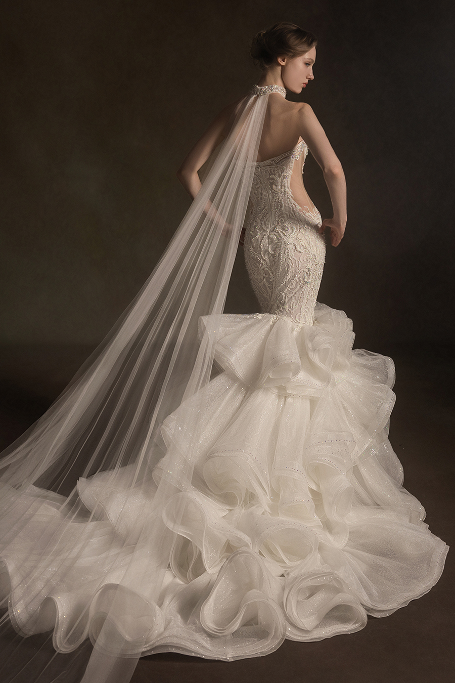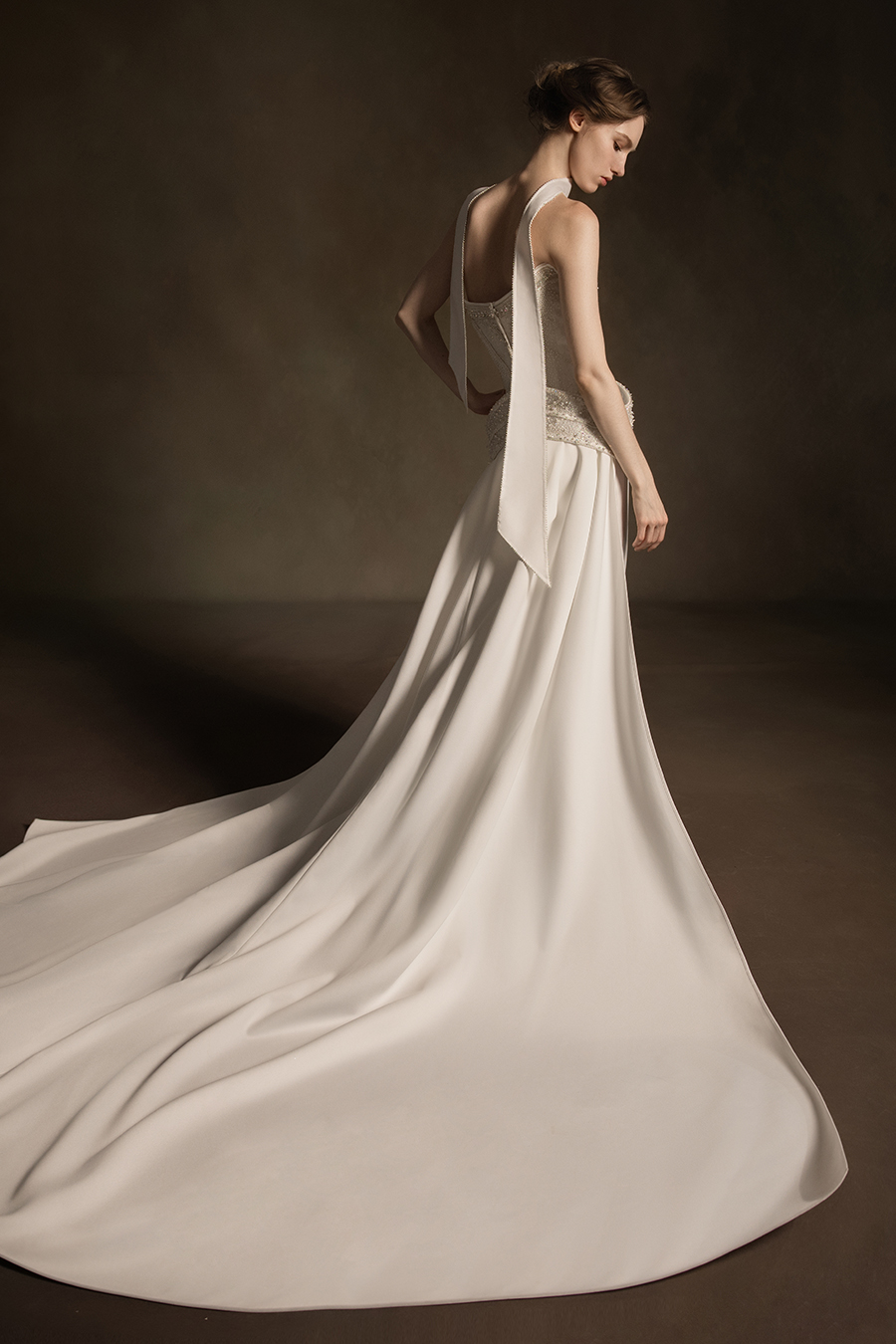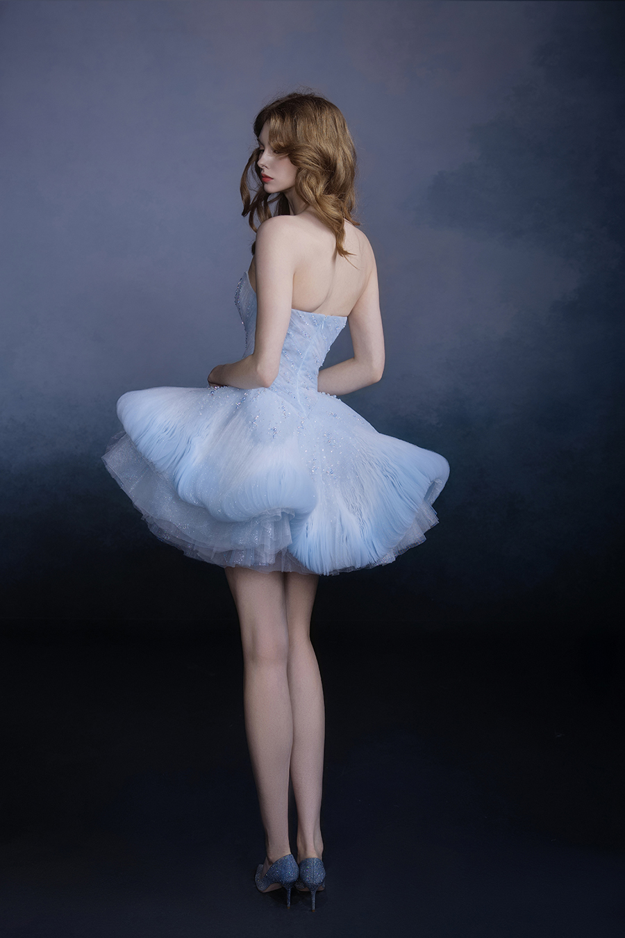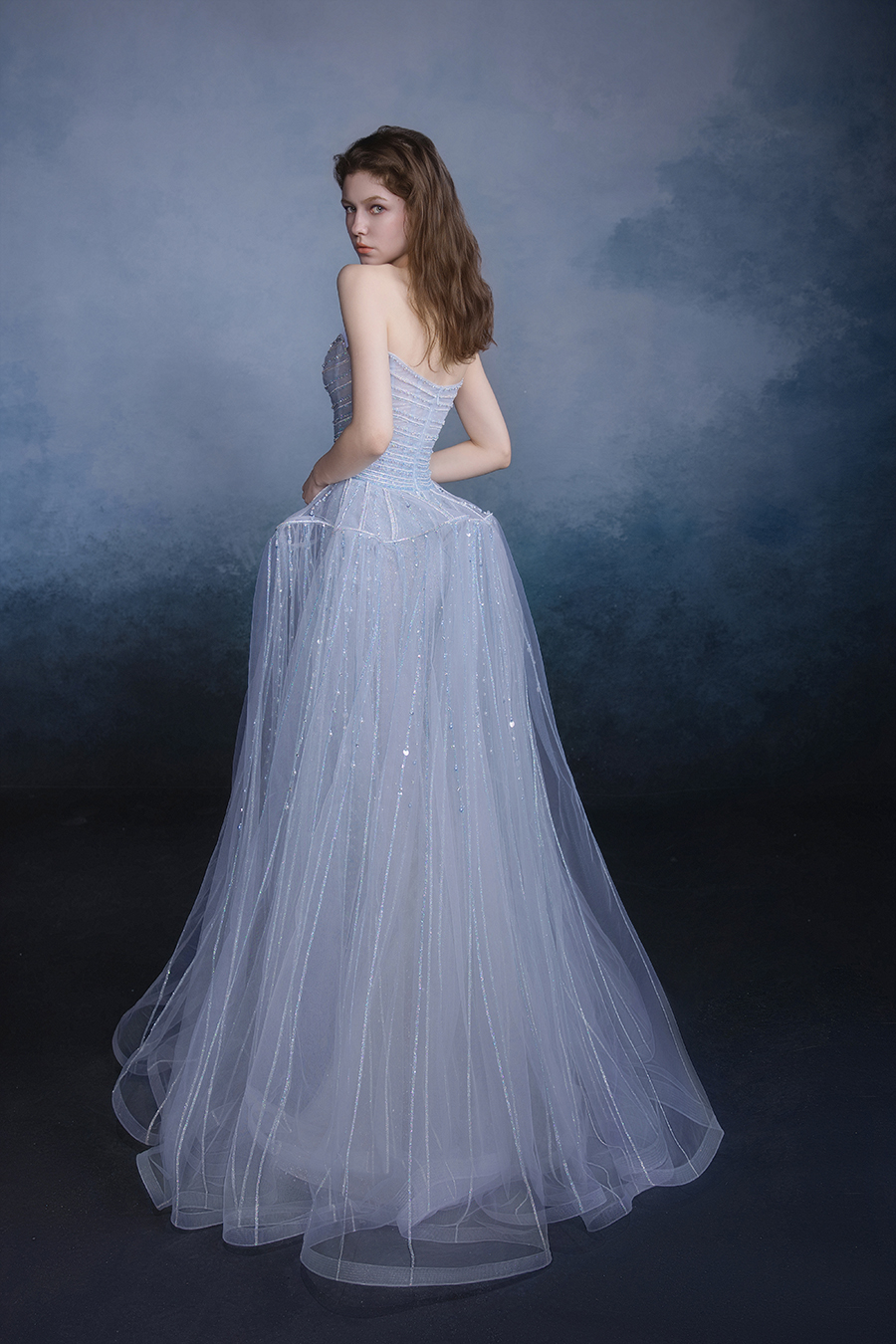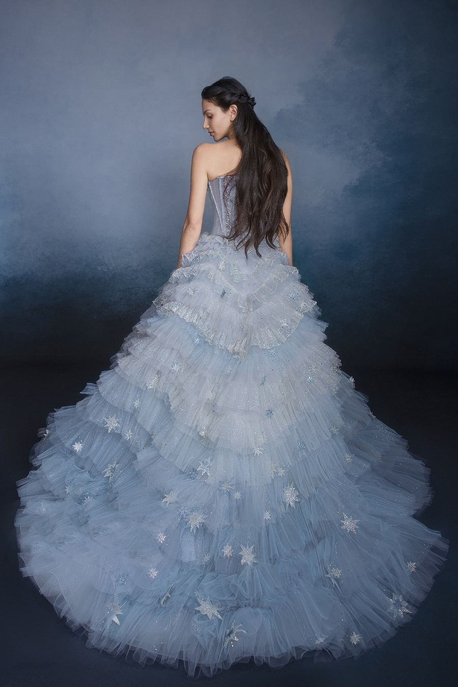 The brilliance of the stars falls from distant light years, unfolding like a swirling scroll, as time and space are immersed ingentle mystery. A light touch of the fingertips makes the stars twinkle, the Milky Way pours down, overflowing withromance. Every ray of light is a whisper from the stars, guiding us to encounter the breathtaking fusion of the universe,dreams, and romance, where we feel the real and profound allure of the starry sky.The Bridal By The Atelier 2025 Fall/Winter collection draws inspiration from the grandeur of Russian architecture and the dreamlike intertwining of stars. As the aurora described by Leo Tolstoy sweeps across the Neva River, the artisans are stitching this celestial phenomenon into the texture of the wedding gown. They skilfully capture the whispers of the galaxy,using fabric as a medium to replicate the beauty of celestial bodies, creating a dreamlike gown that dances with the stars.A variety of figurative decorative patterns are woven throughout the collection’s designs, such as “lightly drifting in the direction of star trails” and “ancient Russian architecture.” The designer skilfully employs techniques like pintucking, rhinestone application, pleating, and machine embroidery, deconstructing and recombining these elements to create magical artistic effects. Ice-blue aurora rhinestones and scattered star-like beadwork add a dazzling brilliance. Each gown is crafted with exceptional artistry, transforming the bride into the dreamy protagonist of the starry sky, radiating unique romance and embodying The Atelier’s signature celestial romanticism.roll, as time and space are immersed in gentle mystery. A light touch of the fingertips makes the stars twinkle, the Milky Way pours down, overflowing with romance. Every ray of light is a whisper from the stars, guiding us to encounter the breathtaking fusion of the universe, dreams, and romance, where we feel the real and profound allure of the starry sky