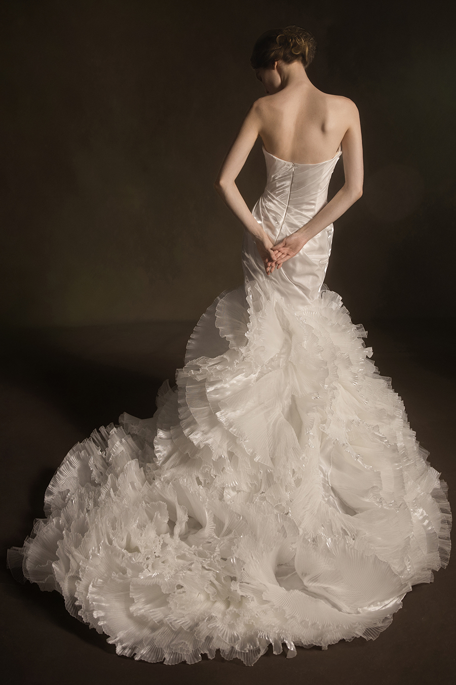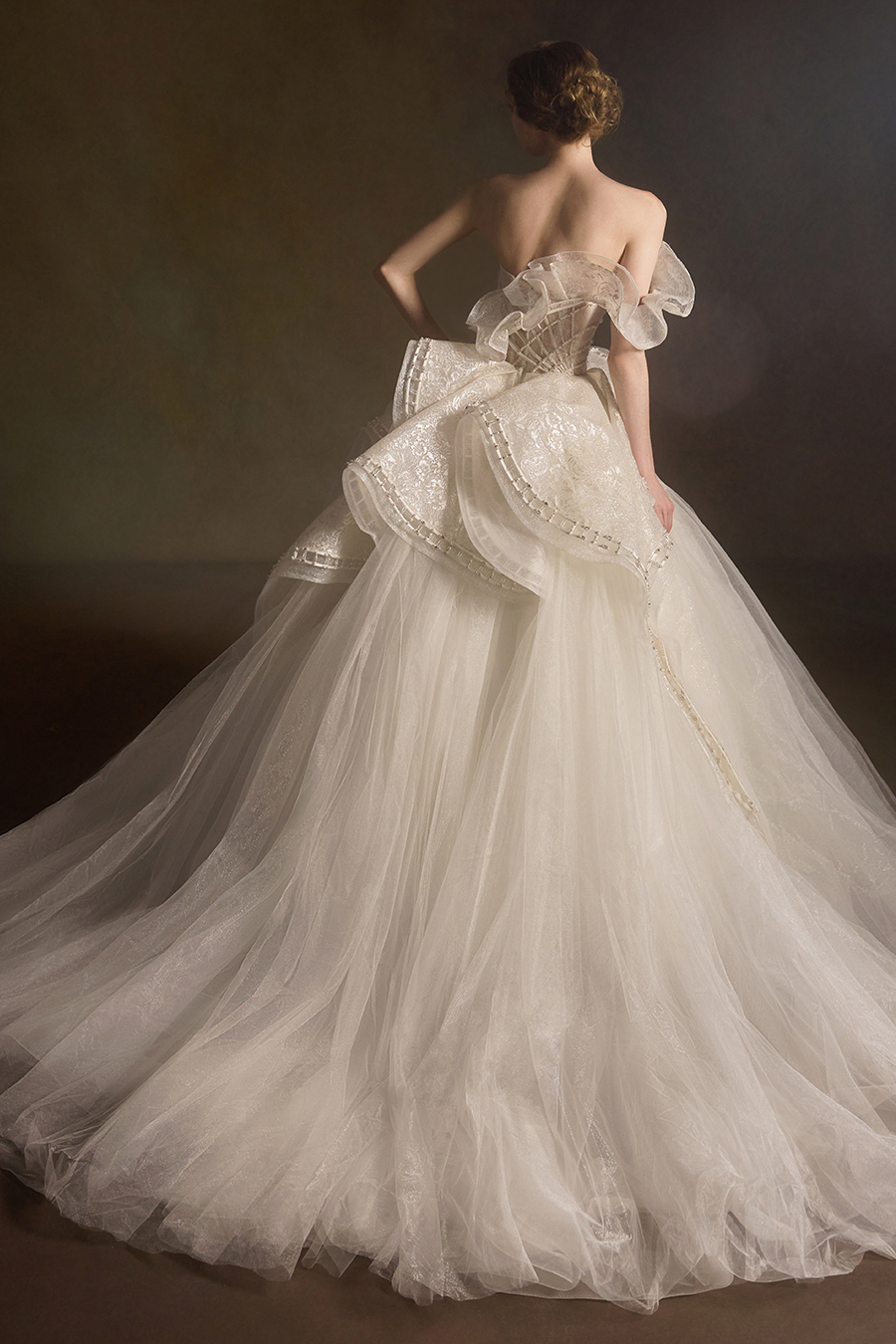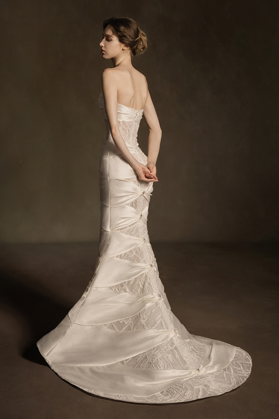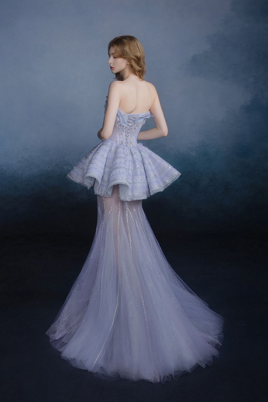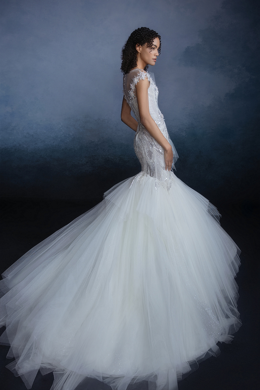 The brilliance of the stars falls from distant light years, unfolding like a swirling scroll, as time and space are immersed ingentle mystery. A light touch of the fingertips makes the stars twinkle, the Milky Way pours down, overflowing withromance. Every ray of light is a whisper from the stars, guiding us to encounter the breathtaking fusion of the universe,dreams, and romance, where we feel the real and profound allure of the starry sky.The Bridal By The Atelier 2025 Fall/Winter collection draws inspiration from the grandeur of Russian architecture and the dreamlike intertwining of stars. As the aurora described by Leo Tolstoy sweeps across the Neva River, the artisans are stitching this celestial phenomenon into the texture of the wedding gown. They skilfully capture the whispers of the galaxy,using fabric as a medium to replicate the beauty of celestial bodies, creating a dreamlike gown that dances with the stars.A variety of figurative decorative patterns are woven throughout the collection’s designs, such as “lightly drifting in the direction of star trails” and “ancient Russian architecture.” The designer skilfully employs techniques like pintucking, rhinestone application, pleating, and machine embroidery, deconstructing and recombining these elements to create magical artistic effects. Ice-blue aurora rhinestones and scattered star-like beadwork add a dazzling brilliance. Each gown is crafted with exceptional artistry, transforming the bride into the dreamy protagonist of the starry sky, radiating unique romance and embodying The Atelier’s signature celestial romanticism.roll, as time and space are immersed in gentle mystery. A light touch of the fingertips makes the stars twinkle, the Milky Way pours down, overflowing with romance. Every ray of light is a whisper from the stars, guiding us to encounter the breathtaking fusion of the universe, dreams, and romance, where we feel the real and profound allure of the starry sky