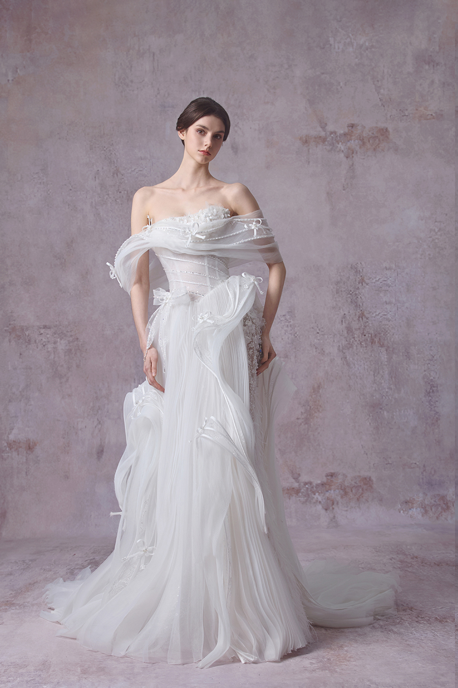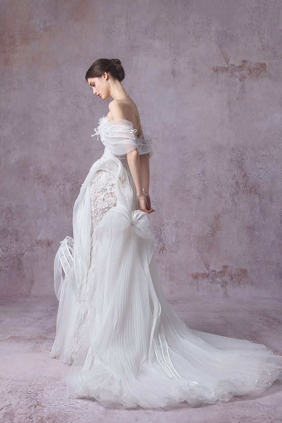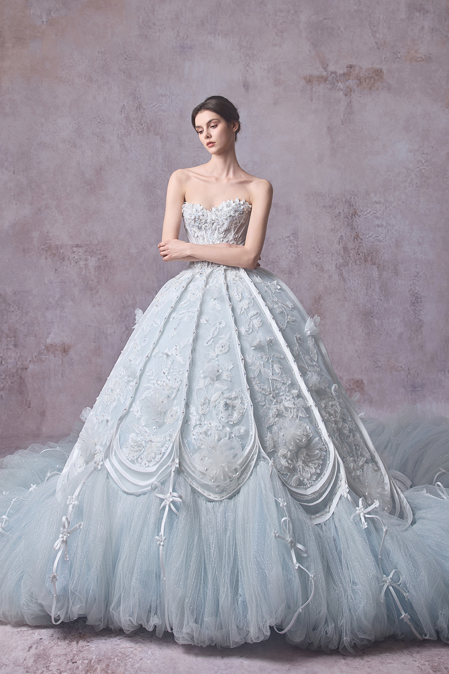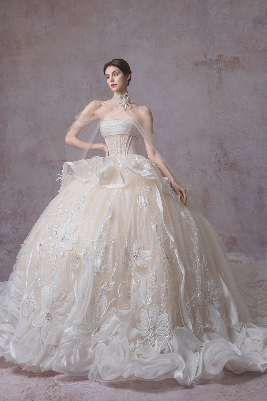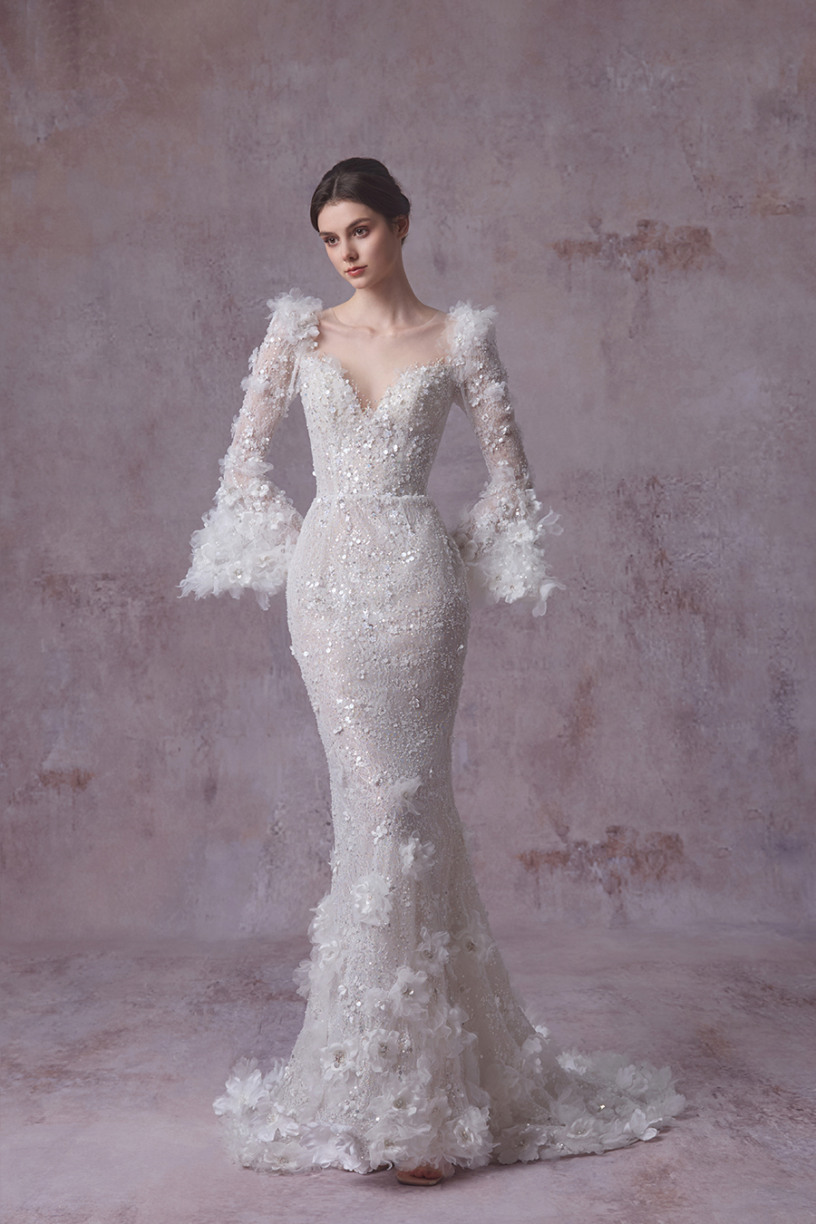 Born from the reverie of a vision that reveals the hidden sanctuary of the feminine spirit, and inspired by Dickinson’s Garden, The Bridal by The Atelier presents its Spring/Summer 2026 bridal collection, Fleurs Crues Plumes. Roses unfurl as the heartbeat of the collection, their petals whispering of ardent love and fearless courage. Corsetry lends structure, shaping resilience into grace with a reflection of the steadfast spirit within. The lace patterns bloom like verses, flowing in hushed lines that trace the tender pulse of emotion. Together, roses, corsetry, and lace weave a tapestry of growth, mirroring the unfolding of a woman’s many charms. The soft presence of butterflies’ hints at a spirit unbound, graceful and free upon its journey. Amid blossoms in full bloom, four-leaf clovers appear like hidden blessings of fortune. The lace drapes across the gowns, adorned with butterfly embroideries that glimmer in gentle light. Through these designs, the collection captures the essence of womanhood and beauty held in a fleeting, yet eternal moment. On the most sacred day of her life, the bride blossoms in The Bridal’s signature purity, natural grace, and timeless romance.