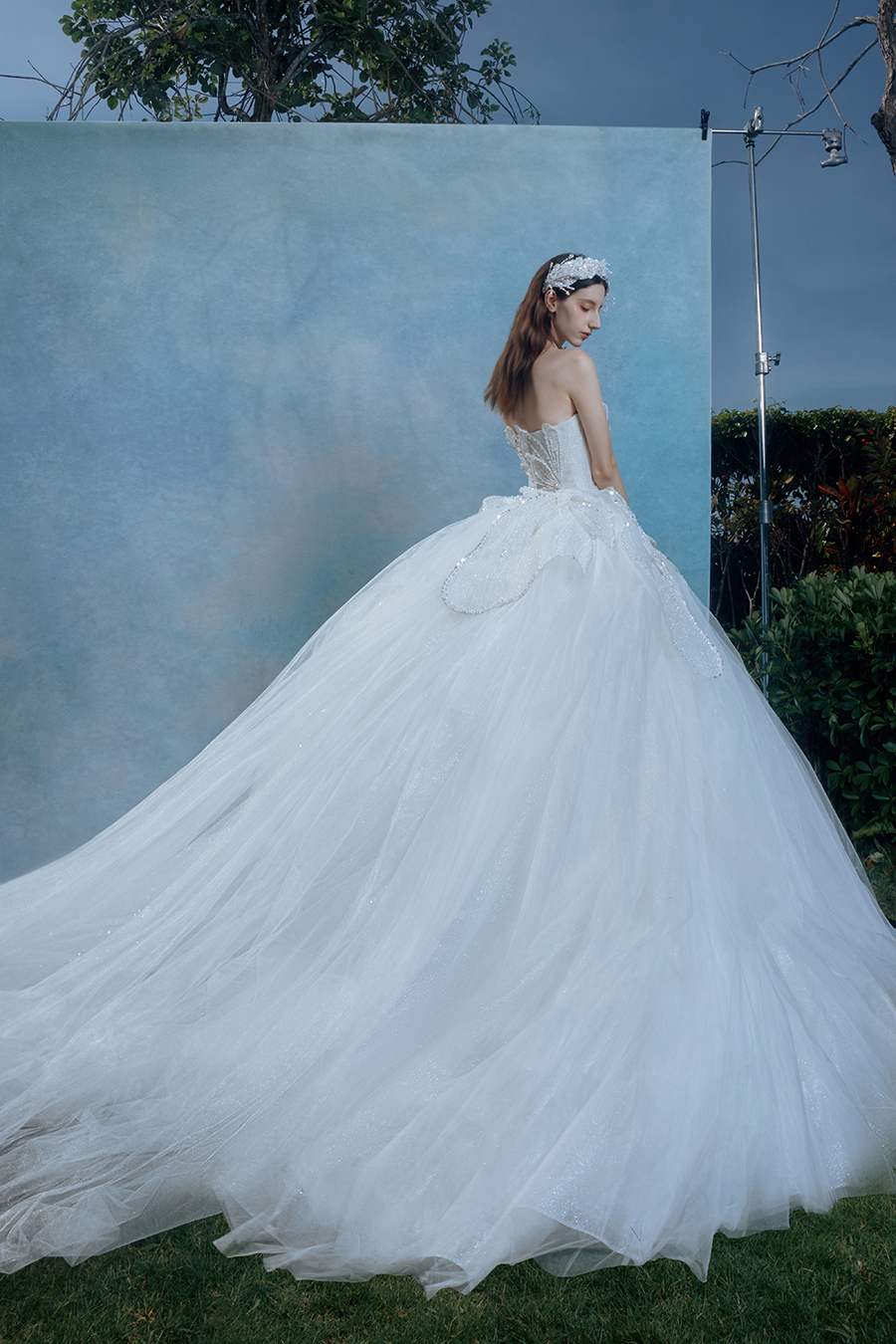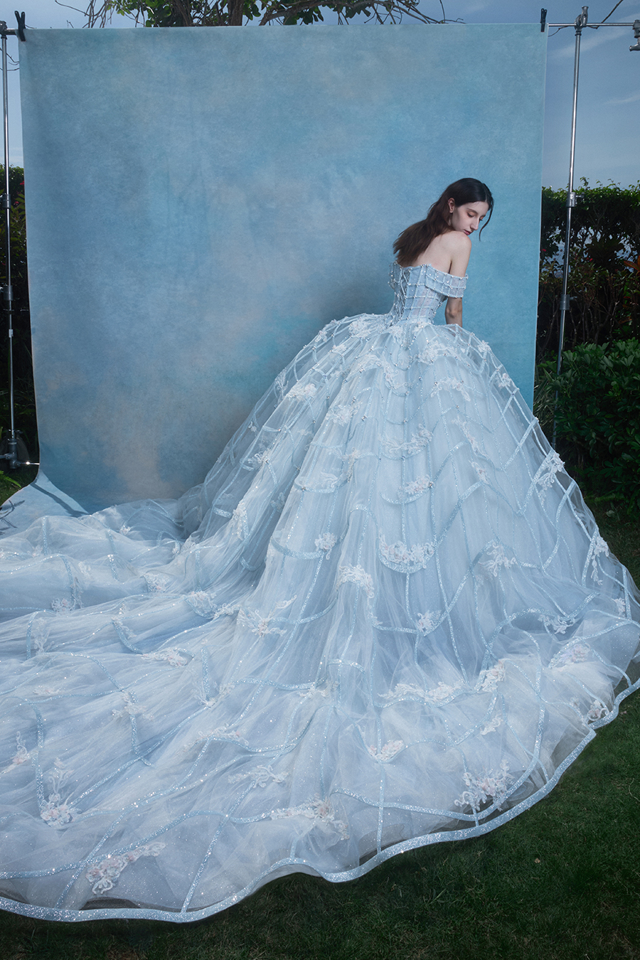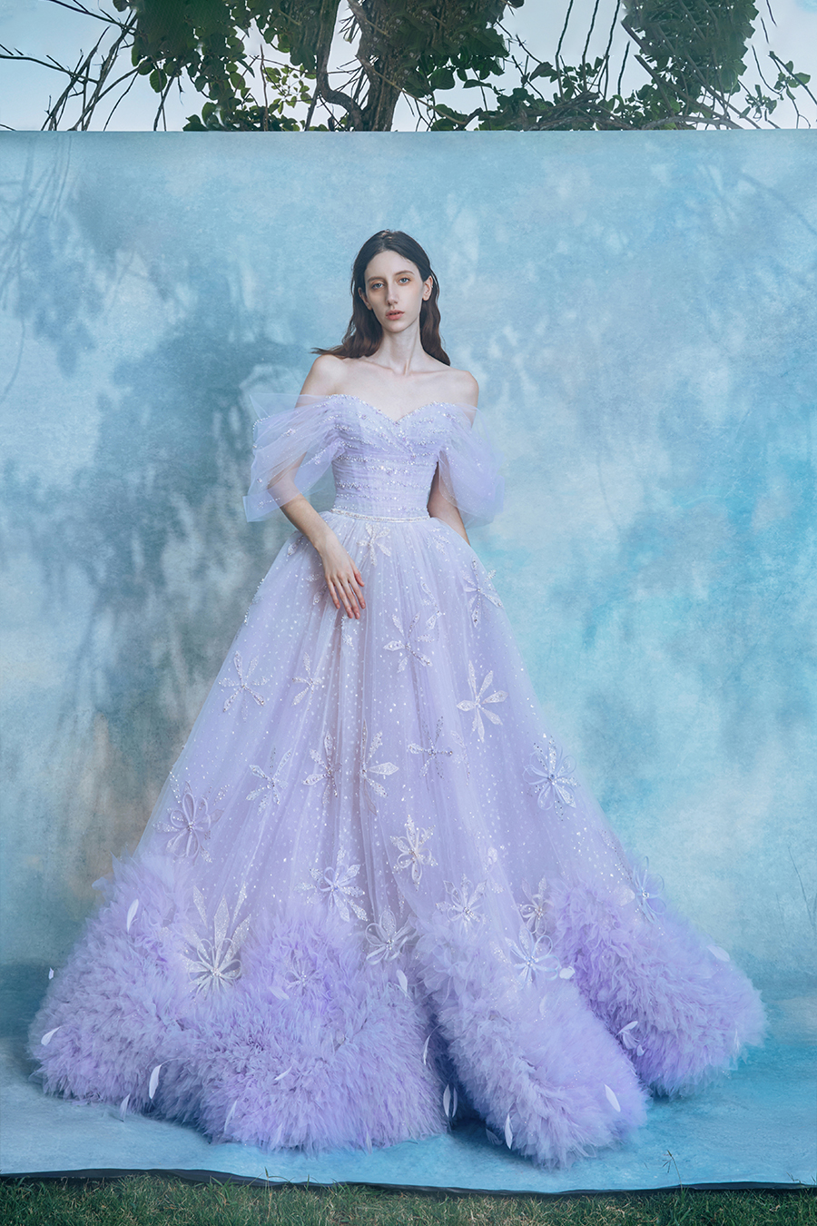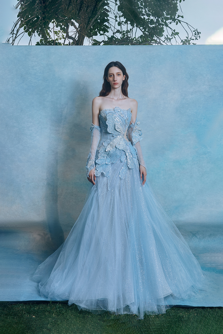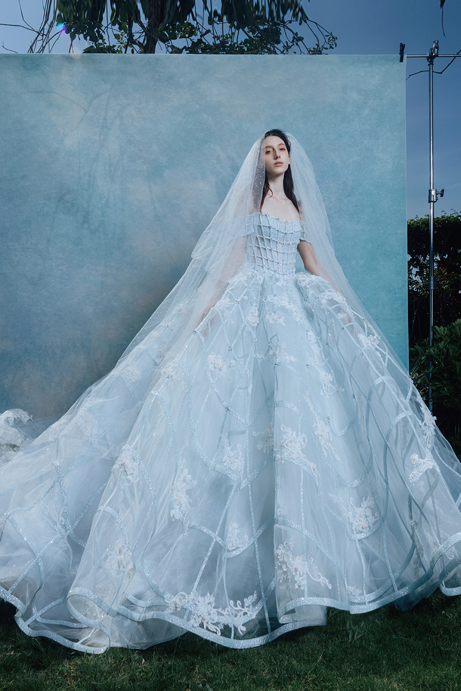 When the cold winter quietly fades away, The Atelier's The R ê ve elegantly launches its 2026 Spring/Summer [Linêa Éternelle] wedding dress collection in the twilight of spring. The Atelier is known for its fusion of multiculturalism and exquisite craftsmanship. Inspired by the architectural structure, the designer transformed the dreamlike light and shadow on the path of tracing light into three-dimensional cutting. Smooth lines resemble the contours of architecture, combining rigidity and softness, just like using light as a pen and dreams as ink, cleverly outlining the ultimate beauty of the body and space. The series selects Türkiye fabric, satin and organza as the main materials. The colors are mainly blue, purple, and gray, blending the deep sky, dreamy romance, and calm earth. The design integrates natural elements, architectural geometric beauty, and light and shadow rhythm, using smooth lines to outline flowers, leaves, and butterflies, and then using embroidery to outline textures and reliefs to shape patterns, allowing natural elements to "grow" along the lines, as if building a dream realm along the trajectory of light. The bride wearing this wedding dress seems to blend with the artistic conception of tracing light and building dreams, becoming the most enchanting scenery in The R ê ve painting.