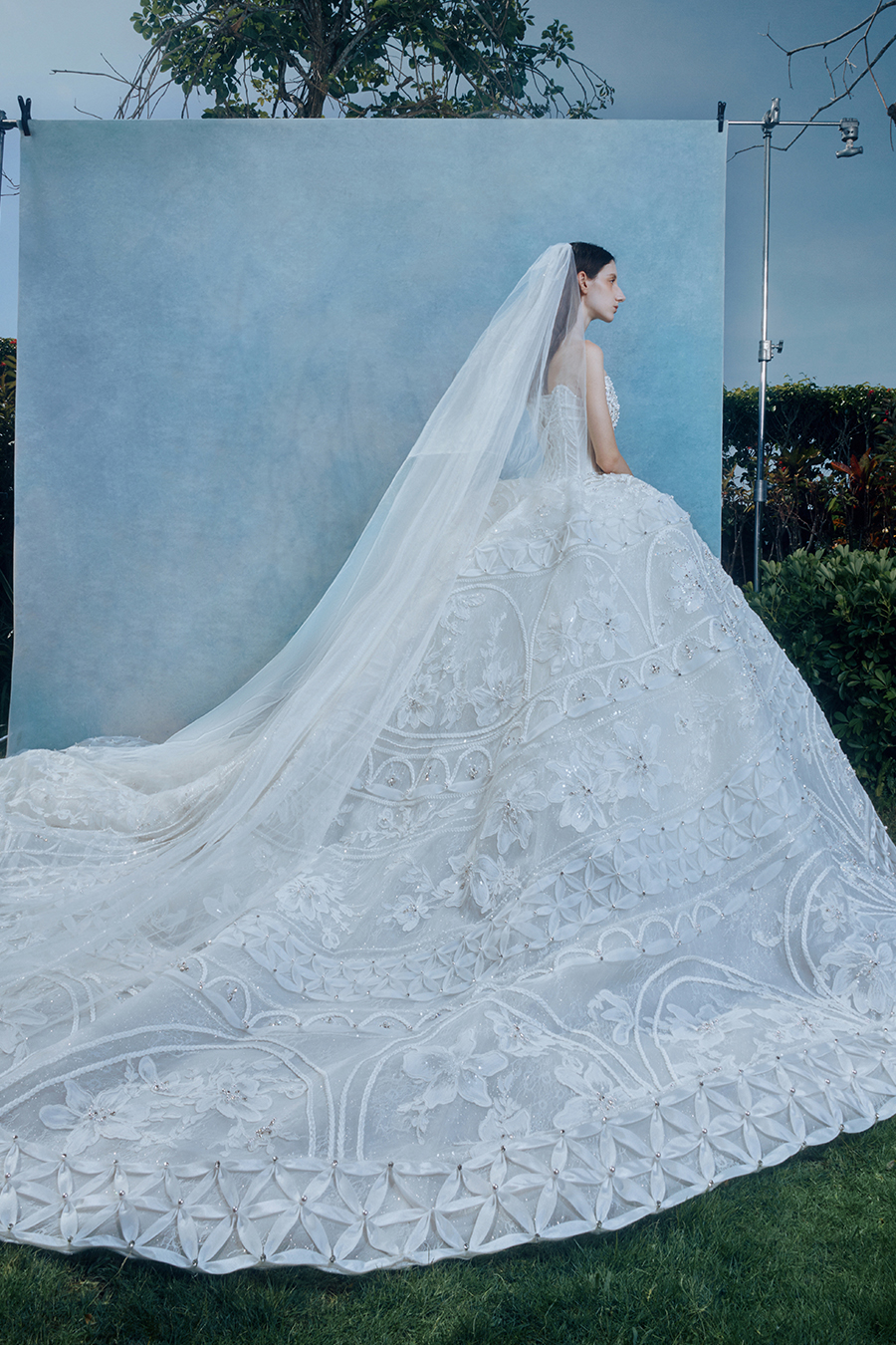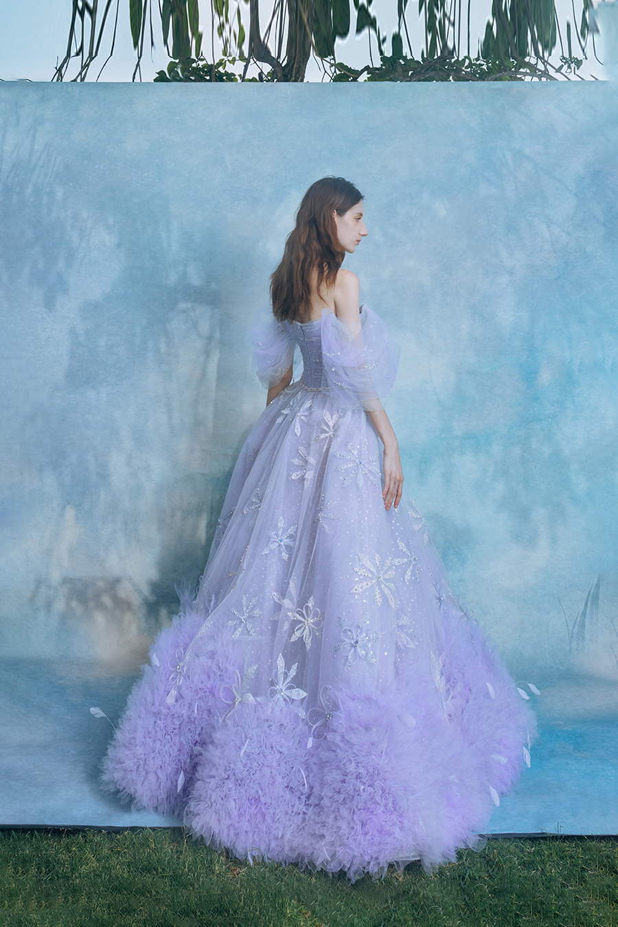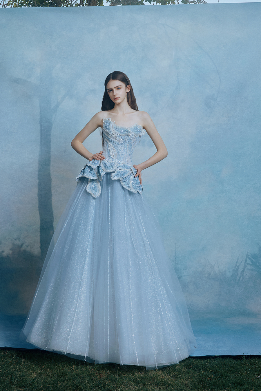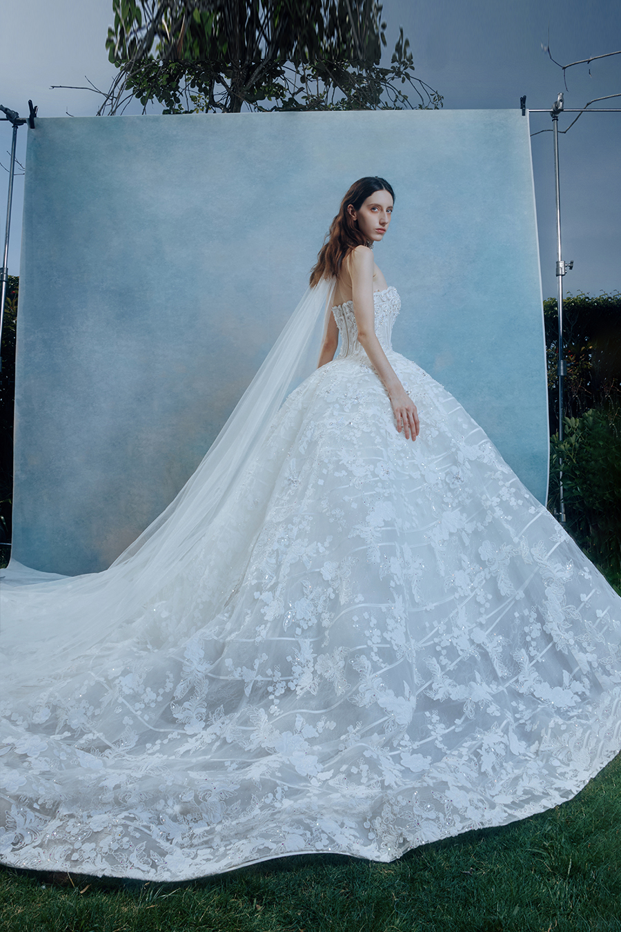 When the cold winter quietly fades away, The Atelier's The R ê ve elegantly launches its 2026 Spring/Summer [Linêa Éternelle] wedding dress collection in the twilight of spring. The Atelier is known for its fusion of multiculturalism and exquisite craftsmanship. Inspired by the architectural structure, the designer transformed the dreamlike light and shadow on the path of tracing light into three-dimensional cutting. Smooth lines resemble the contours of architecture, combining rigidity and softness, just like using light as a pen and dreams as ink, cleverly outlining the ultimate beauty of the body and space. The series selects Türkiye fabric, satin and organza as the main materials. The colors are mainly blue, purple, and gray, blending the deep sky, dreamy romance, and calm earth. The design integrates natural elements, architectural geometric beauty, and light and shadow rhythm, using smooth lines to outline flowers, leaves, and butterflies, and then using embroidery to outline textures and reliefs to shape patterns, allowing natural elements to "grow" along the lines, as if building a dream realm along the trajectory of light. The bride wearing this wedding dress seems to blend with the artistic conception of tracing light and building dreams, becoming the most enchanting scenery in The R ê ve painting.