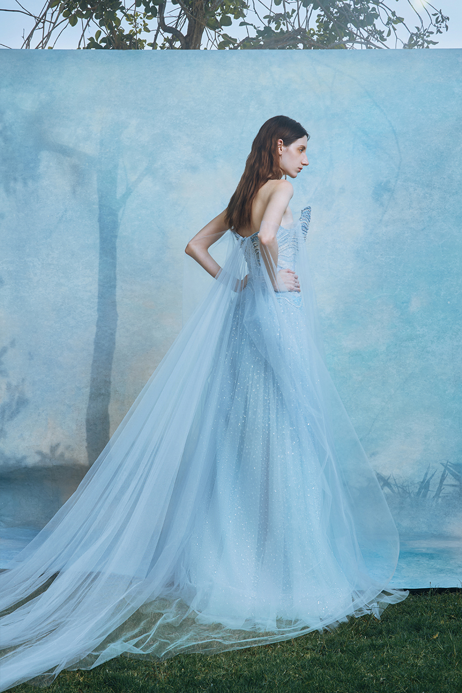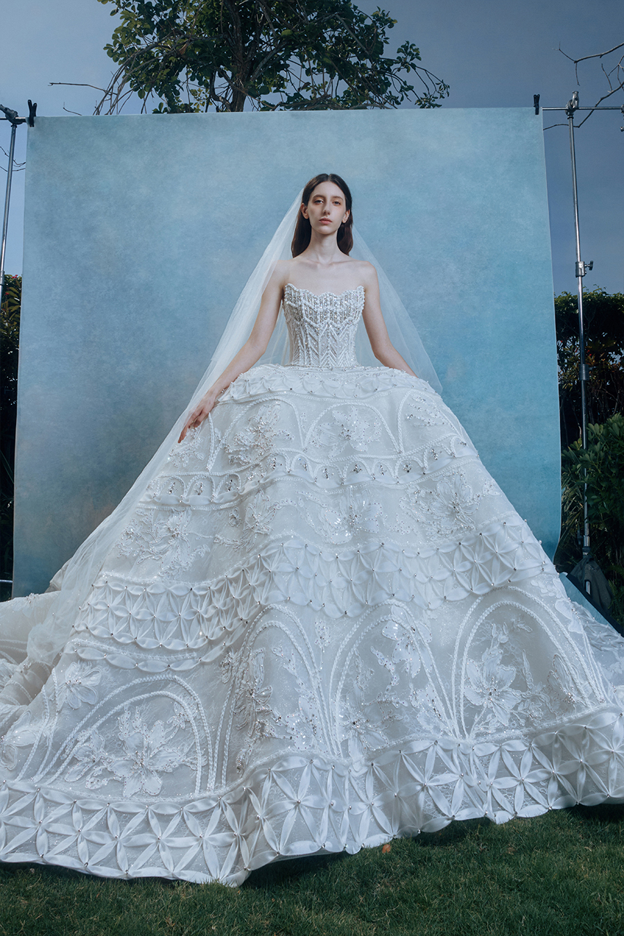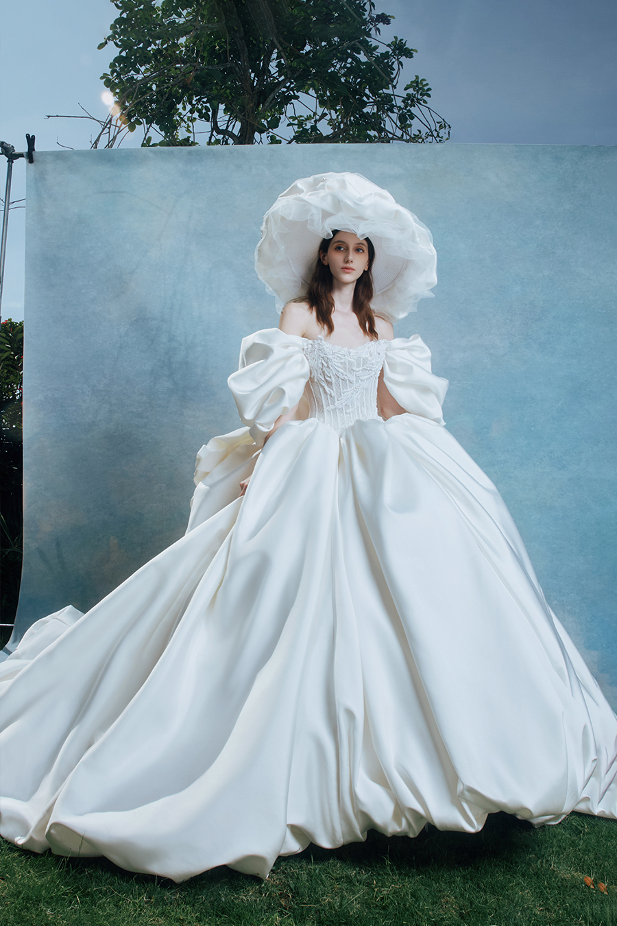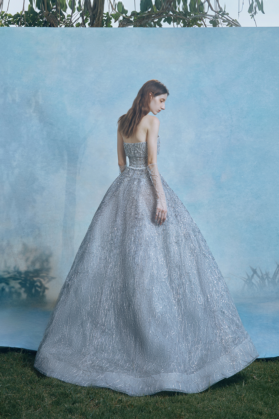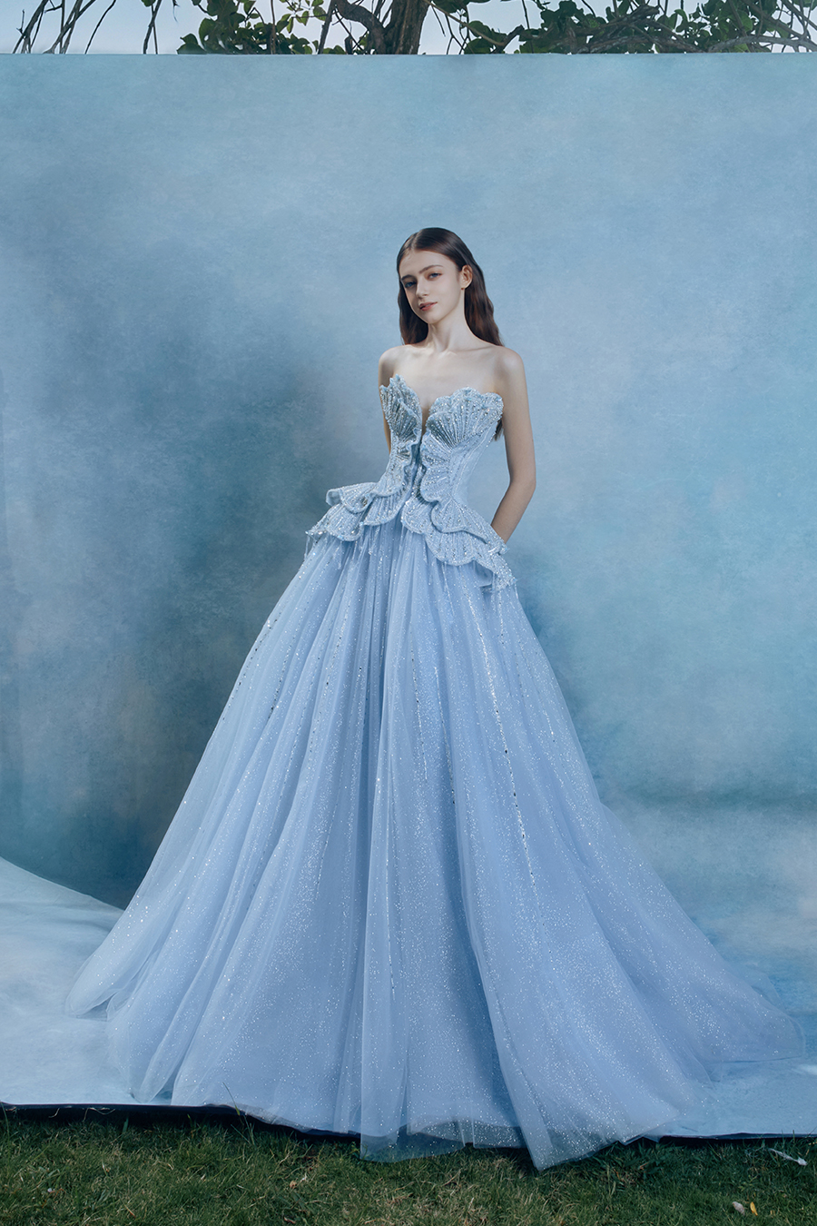 When the cold winter quietly fades away, The Atelier's The R ê ve elegantly launches its 2026 Spring/Summer [Linêa Éternelle] wedding dress collection in the twilight of spring. The Atelier is known for its fusion of multiculturalism and exquisite craftsmanship. Inspired by the architectural structure, the designer transformed the dreamlike light and shadow on the path of tracing light into three-dimensional cutting. Smooth lines resemble the contours of architecture, combining rigidity and softness, just like using light as a pen and dreams as ink, cleverly outlining the ultimate beauty of the body and space. The series selects Türkiye fabric, satin and organza as the main materials. The colors are mainly blue, purple, and gray, blending the deep sky, dreamy romance, and calm earth. The design integrates natural elements, architectural geometric beauty, and light and shadow rhythm, using smooth lines to outline flowers, leaves, and butterflies, and then using embroidery to outline textures and reliefs to shape patterns, allowing natural elements to "grow" along the lines, as if building a dream realm along the trajectory of light. The bride wearing this wedding dress seems to blend with the artistic conception of tracing light and building dreams, becoming the most enchanting scenery in The R ê ve painting.