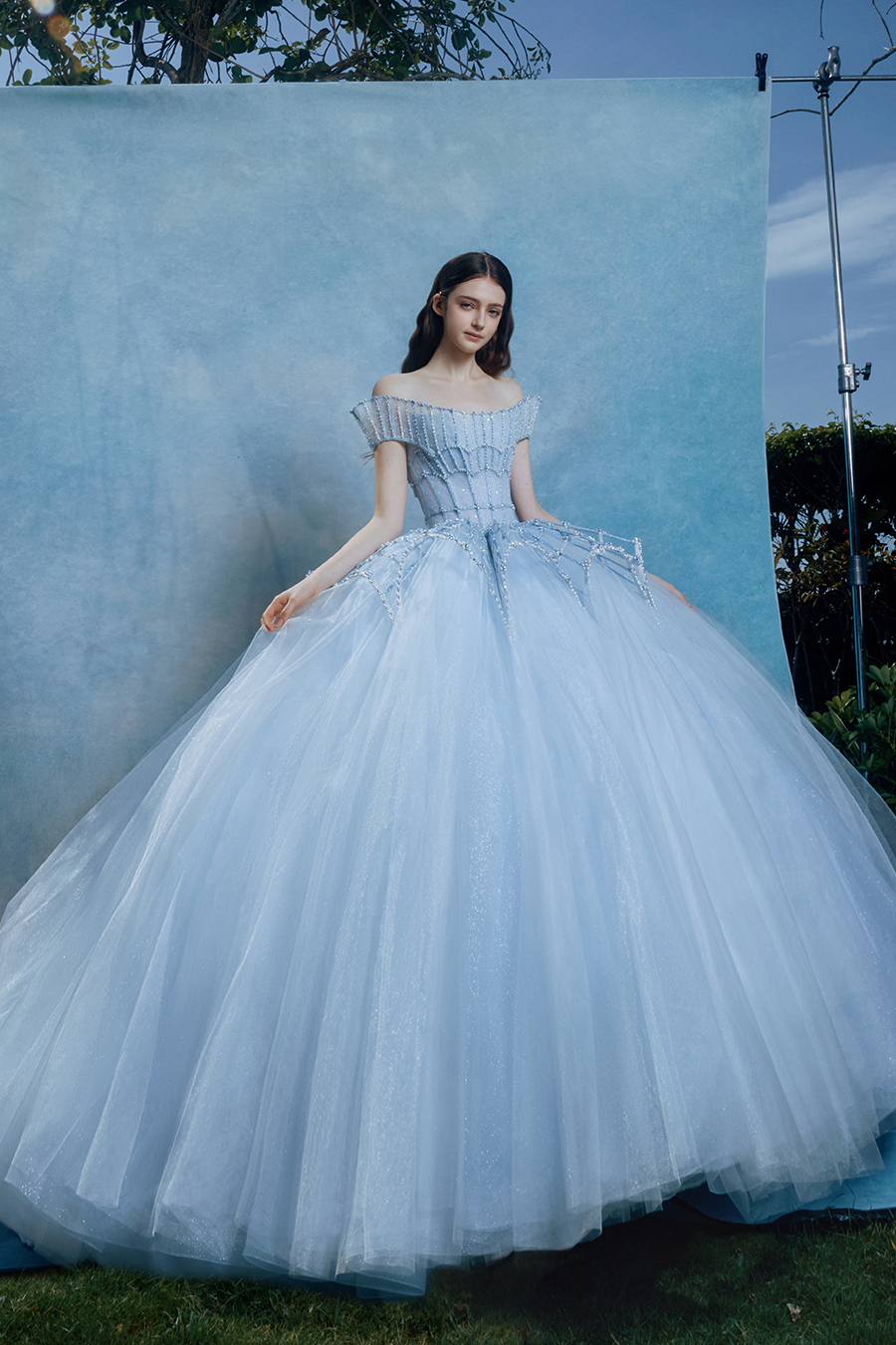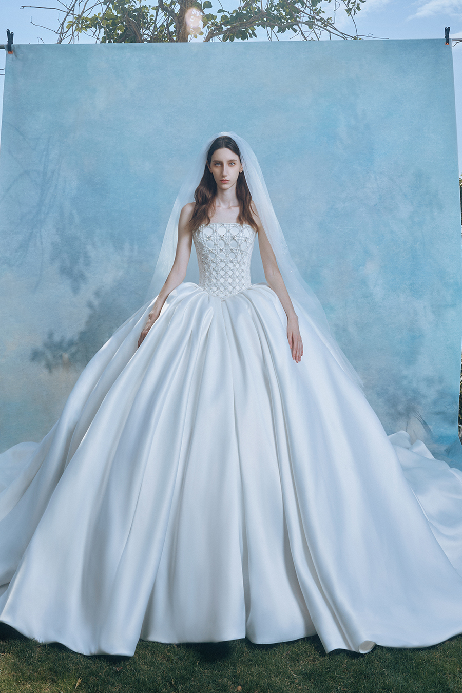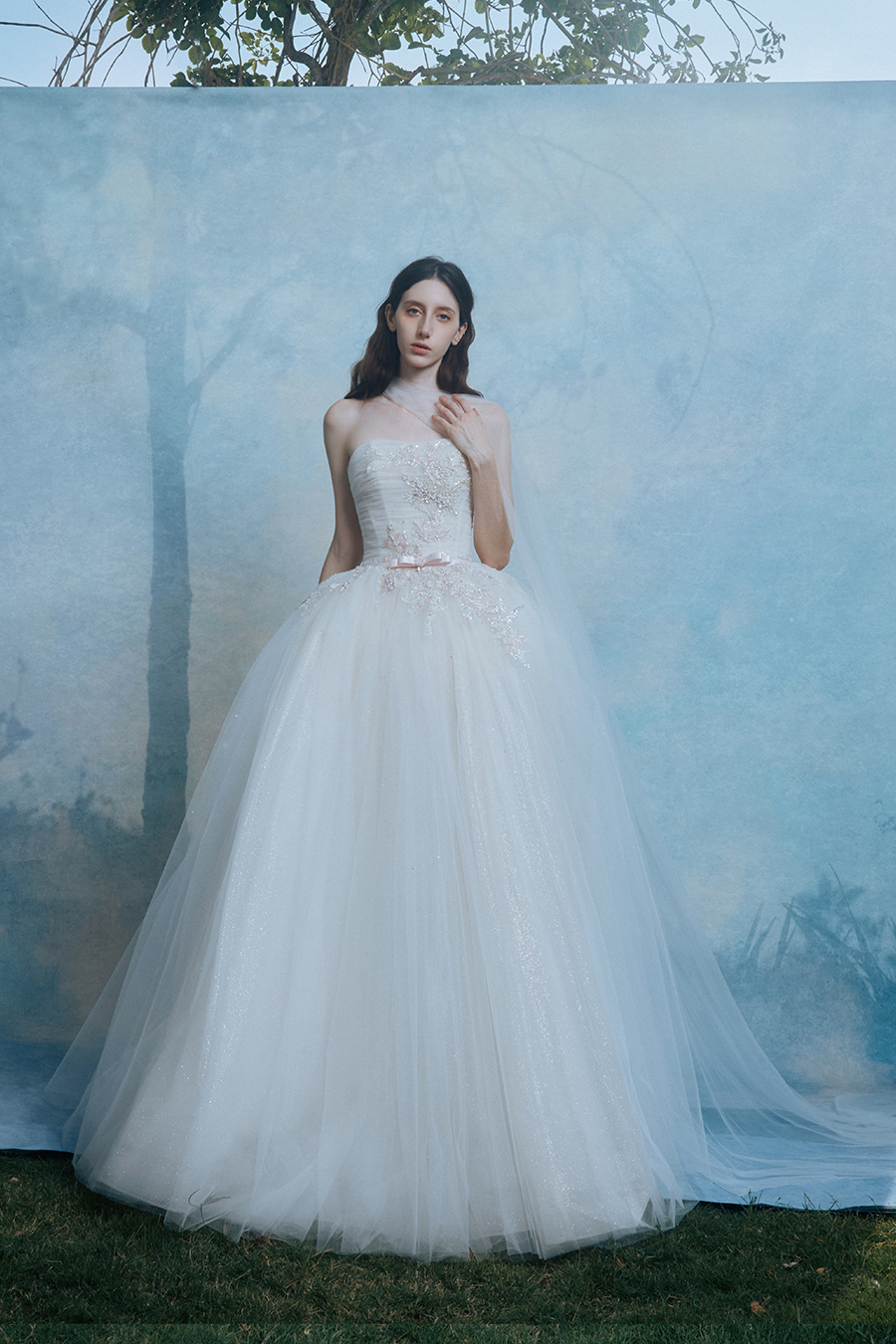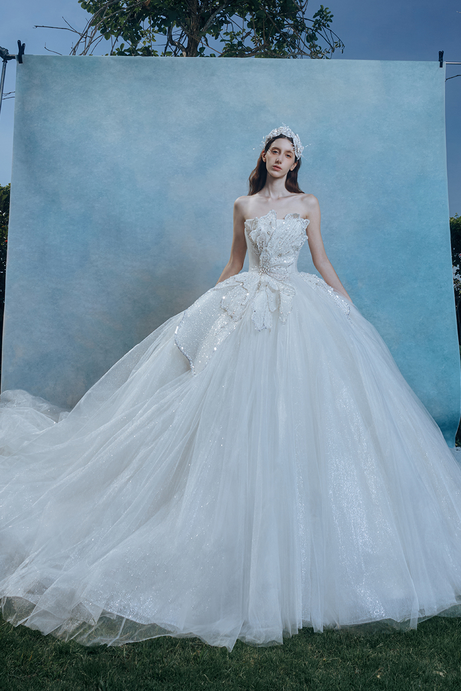 When the cold winter quietly fades away, The Atelier's The R ê ve elegantly launches its 2026 Spring/Summer [Linêa Éternelle] wedding dress collection in the twilight of spring. The Atelier is known for its fusion of multiculturalism and exquisite craftsmanship. Inspired by the architectural structure, the designer transformed the dreamlike light and shadow on the path of tracing light into three-dimensional cutting. Smooth lines resemble the contours of architecture, combining rigidity and softness, just like using light as a pen and dreams as ink, cleverly outlining the ultimate beauty of the body and space. The series selects Türkiye fabric, satin and organza as the main materials. The colors are mainly blue, purple, and gray, blending the deep sky, dreamy romance, and calm earth. The design integrates natural elements, architectural geometric beauty, and light and shadow rhythm, using smooth lines to outline flowers, leaves, and butterflies, and then using embroidery to outline textures and reliefs to shape patterns, allowing natural elements to "grow" along the lines, as if building a dream realm along the trajectory of light. The bride wearing this wedding dress seems to blend with the artistic conception of tracing light and building dreams, becoming the most enchanting scenery in The R ê ve painting.