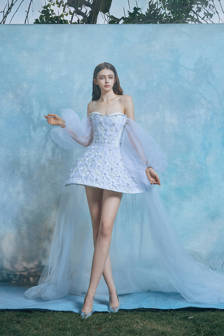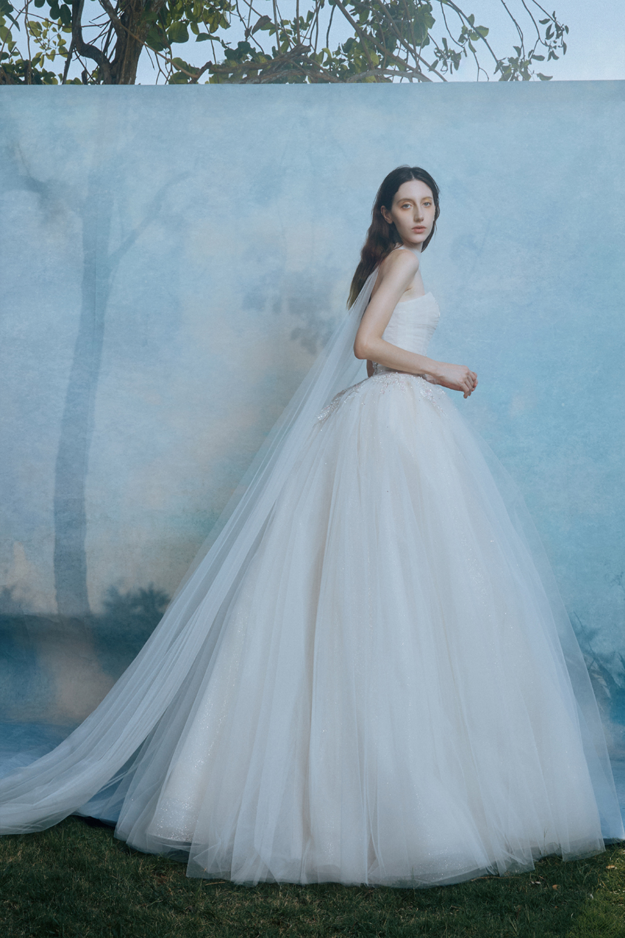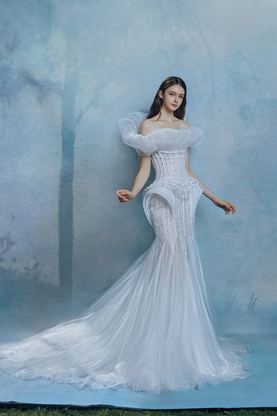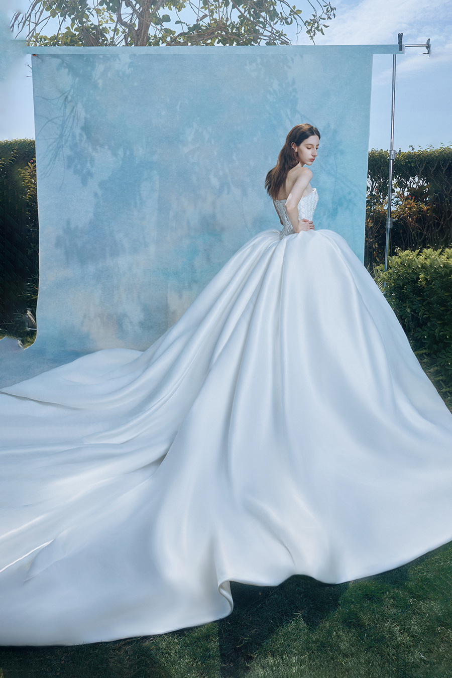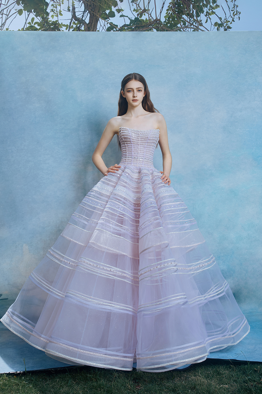 When the cold winter quietly fades away, The Atelier's The R ê ve elegantly launches its 2026 Spring/Summer [Linêa Éternelle] wedding dress collection in the twilight of spring. The Atelier is known for its fusion of multiculturalism and exquisite craftsmanship. Inspired by the architectural structure, the designer transformed the dreamlike light and shadow on the path of tracing light into three-dimensional cutting. Smooth lines resemble the contours of architecture, combining rigidity and softness, just like using light as a pen and dreams as ink, cleverly outlining the ultimate beauty of the body and space. The series selects Türkiye fabric, satin and organza as the main materials. The colors are mainly blue, purple, and gray, blending the deep sky, dreamy romance, and calm earth. The design integrates natural elements, architectural geometric beauty, and light and shadow rhythm, using smooth lines to outline flowers, leaves, and butterflies, and then using embroidery to outline textures and reliefs to shape patterns, allowing natural elements to "grow" along the lines, as if building a dream realm along the trajectory of light. The bride wearing this wedding dress seems to blend with the artistic conception of tracing light and building dreams, becoming the most enchanting scenery in The R ê ve painting.