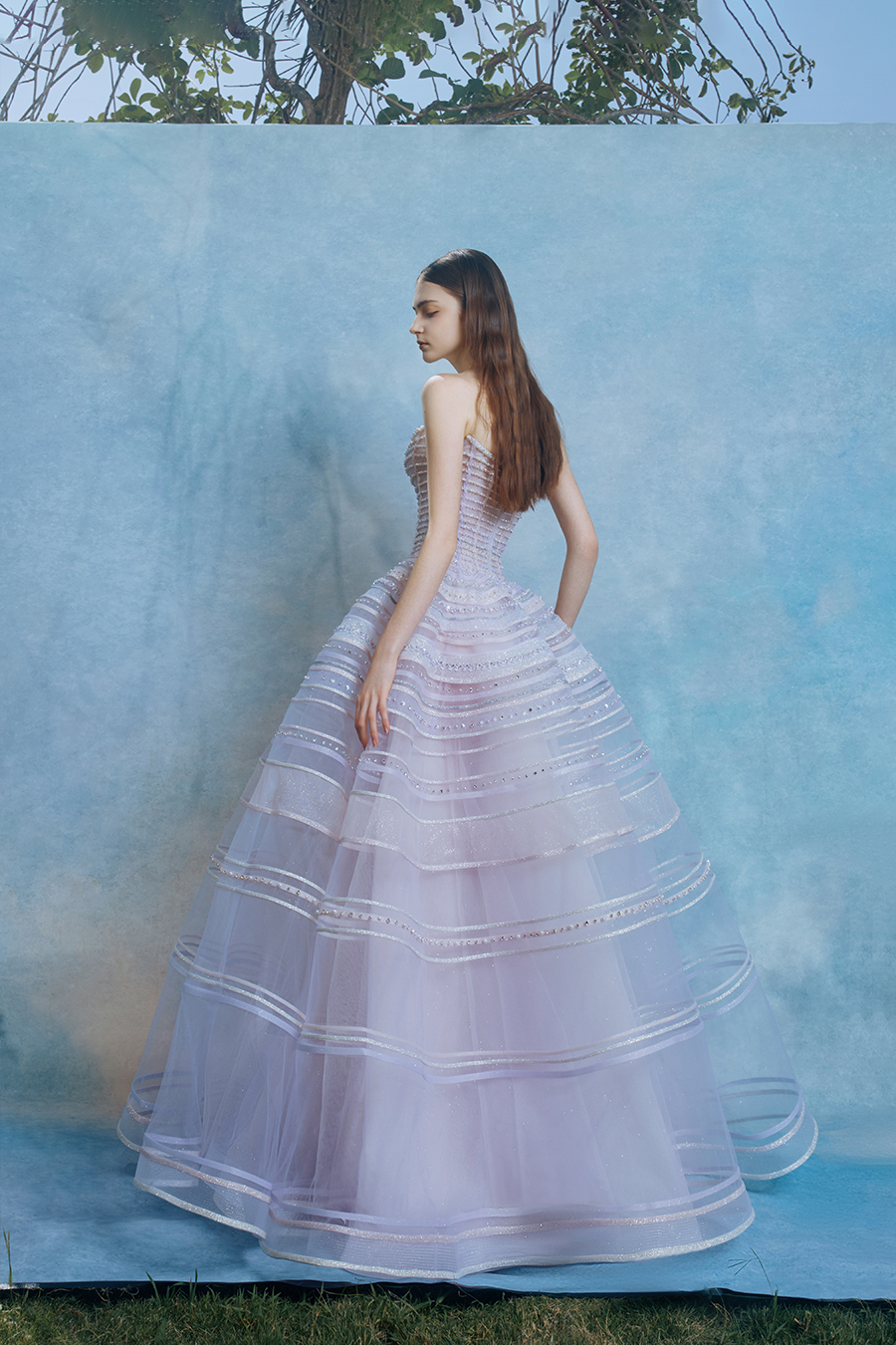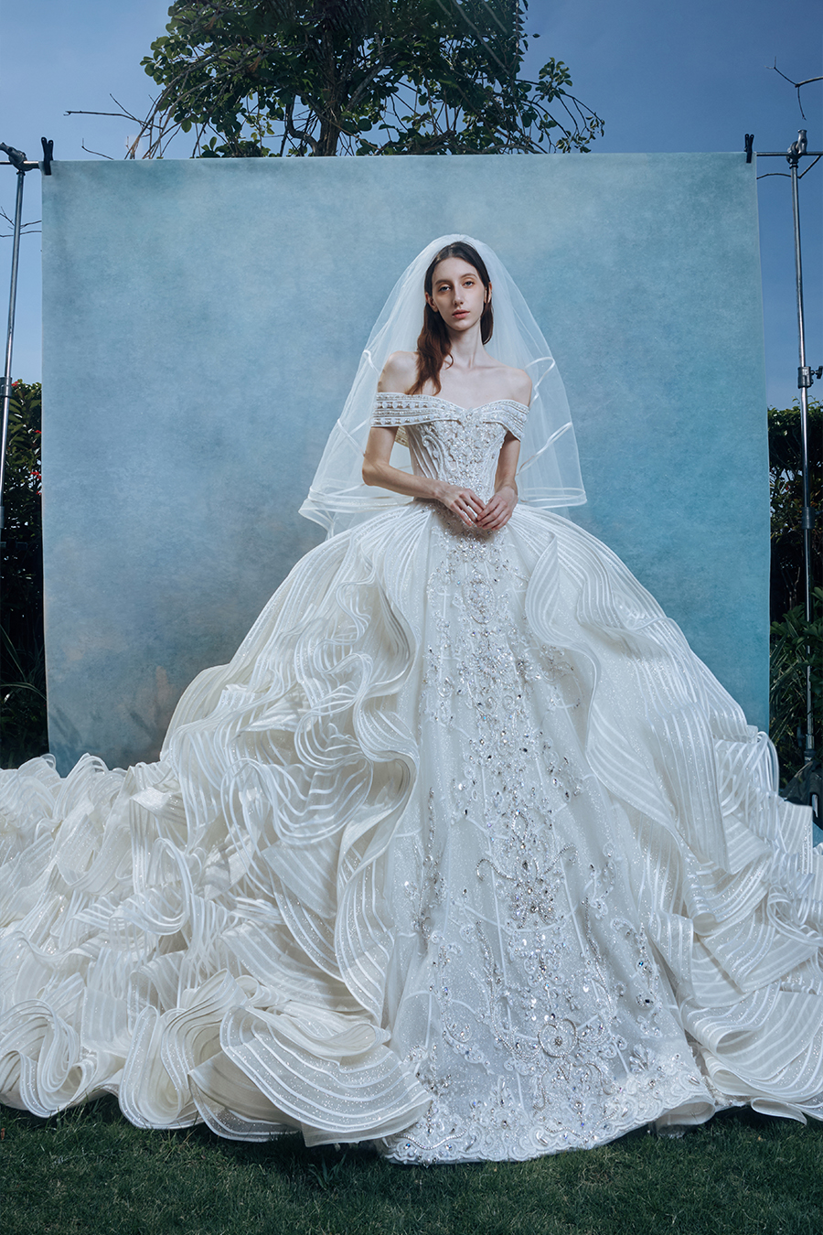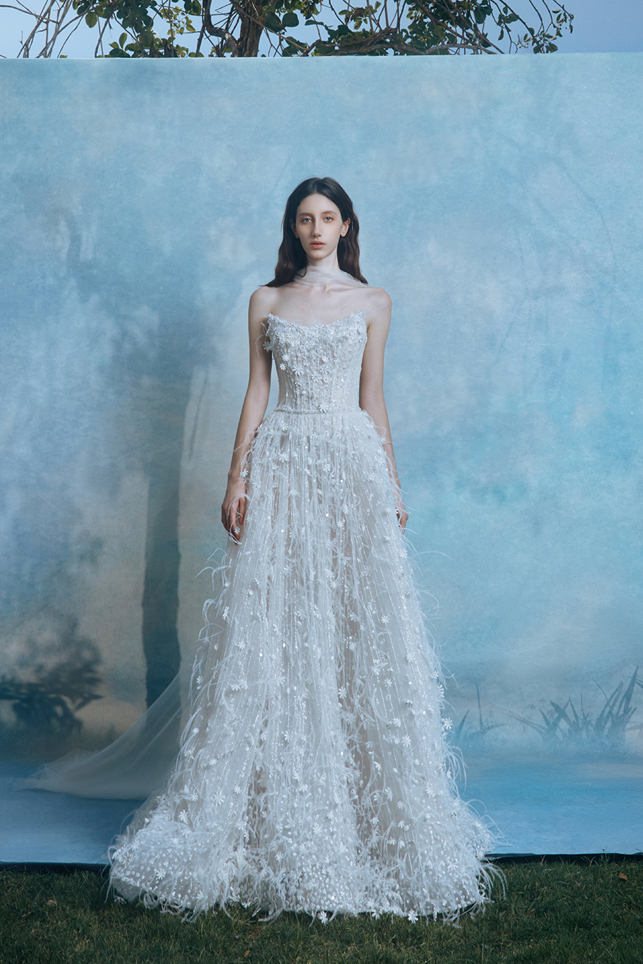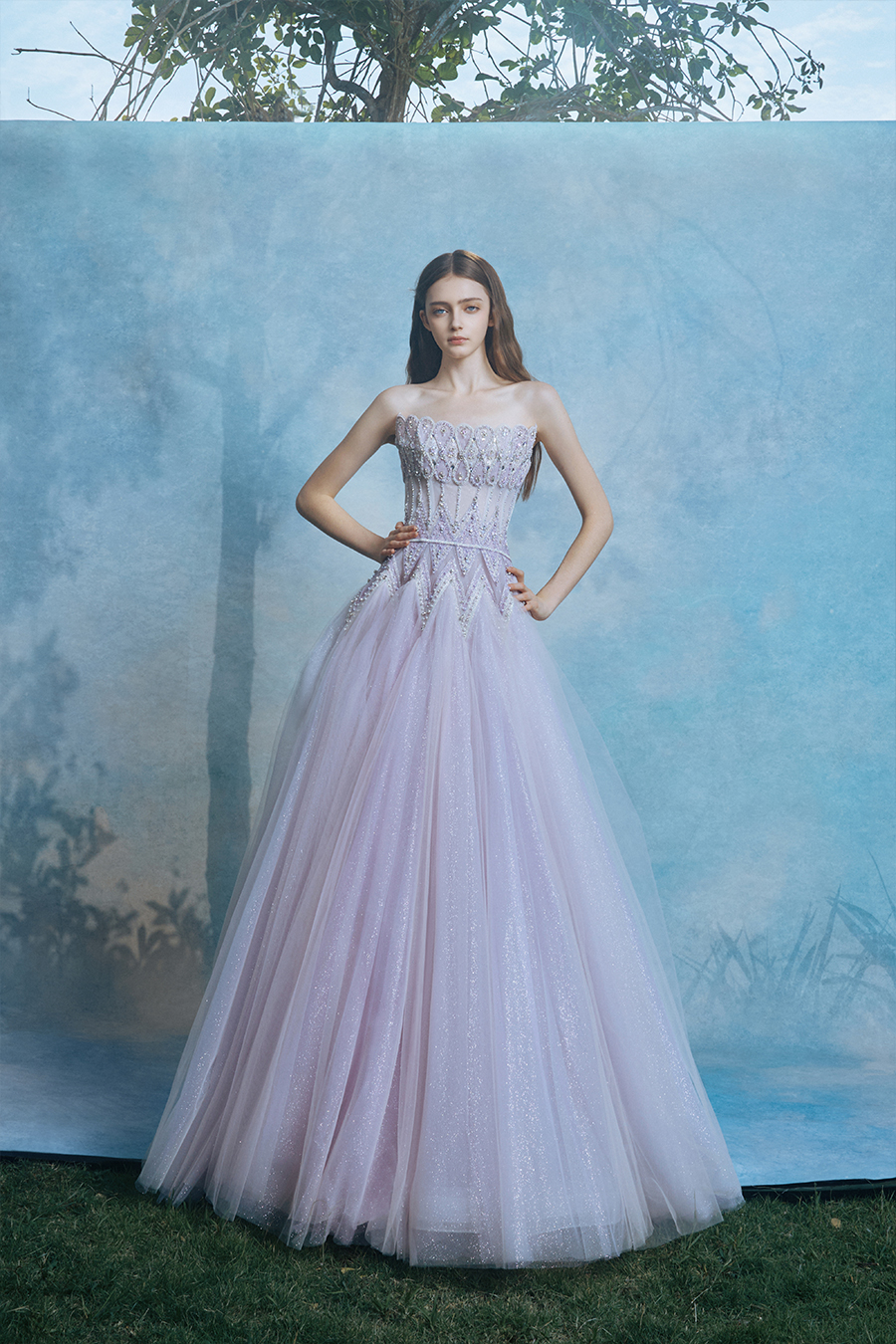 When the cold winter quietly fades away, The Atelier's The R ê ve elegantly launches its 2026 Spring/Summer [Linêa Éternelle] wedding dress collection in the twilight of spring. The Atelier is known for its fusion of multiculturalism and exquisite craftsmanship. Inspired by the architectural structure, the designer transformed the dreamlike light and shadow on the path of tracing light into three-dimensional cutting. Smooth lines resemble the contours of architecture, combining rigidity and softness, just like using light as a pen and dreams as ink, cleverly outlining the ultimate beauty of the body and space. The series selects Türkiye fabric, satin and organza as the main materials. The colors are mainly blue, purple, and gray, blending the deep sky, dreamy romance, and calm earth. The design integrates natural elements, architectural geometric beauty, and light and shadow rhythm, using smooth lines to outline flowers, leaves, and butterflies, and then using embroidery to outline textures and reliefs to shape patterns, allowing natural elements to "grow" along the lines, as if building a dream realm along the trajectory of light. The bride wearing this wedding dress seems to blend with the artistic conception of tracing light and building dreams, becoming the most enchanting scenery in The R ê ve painting.