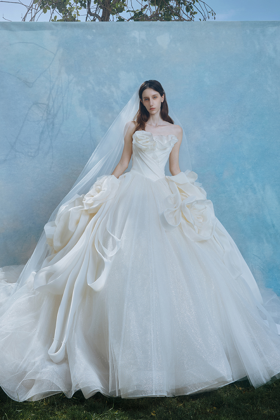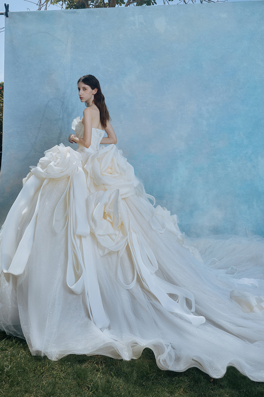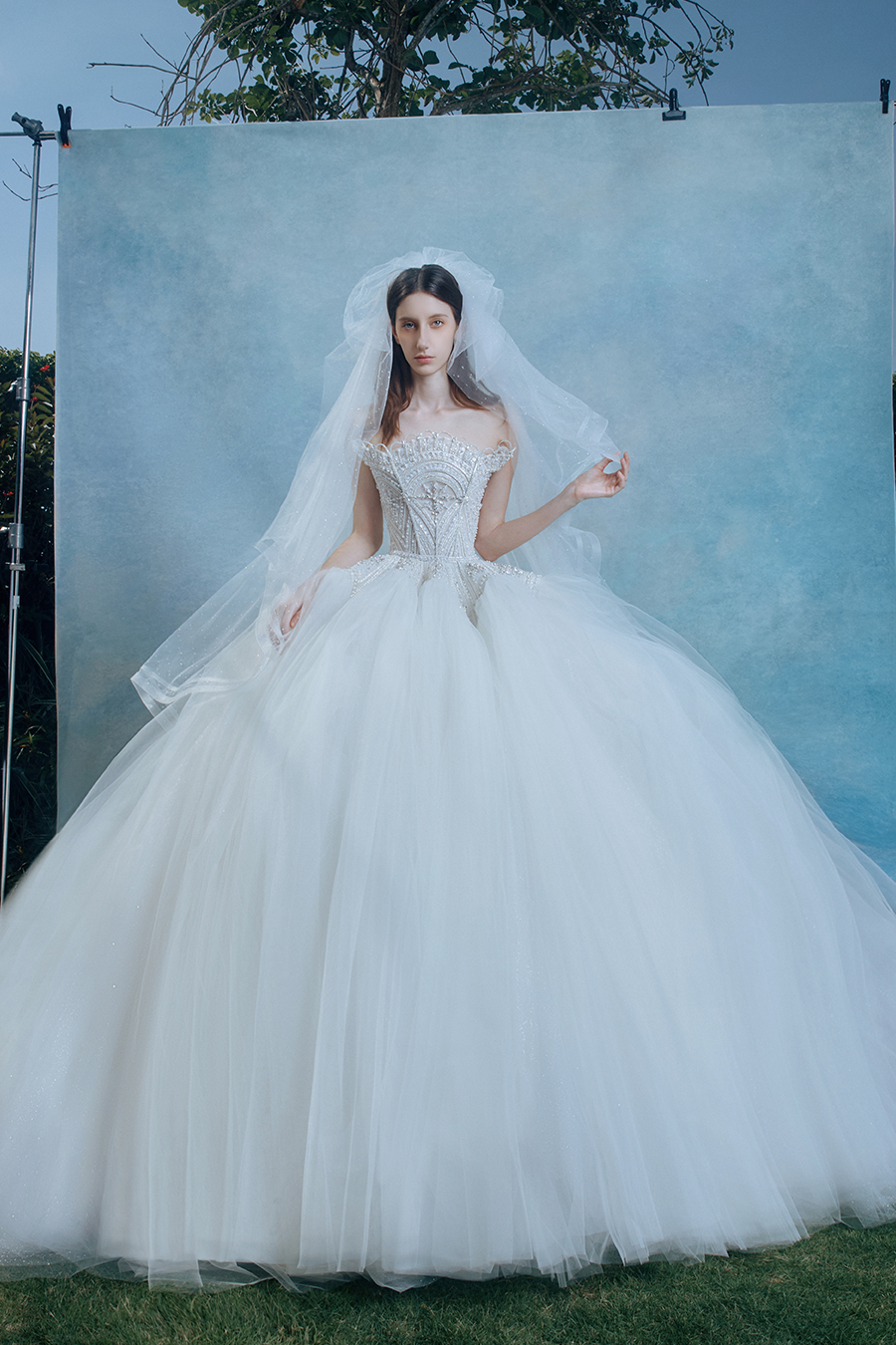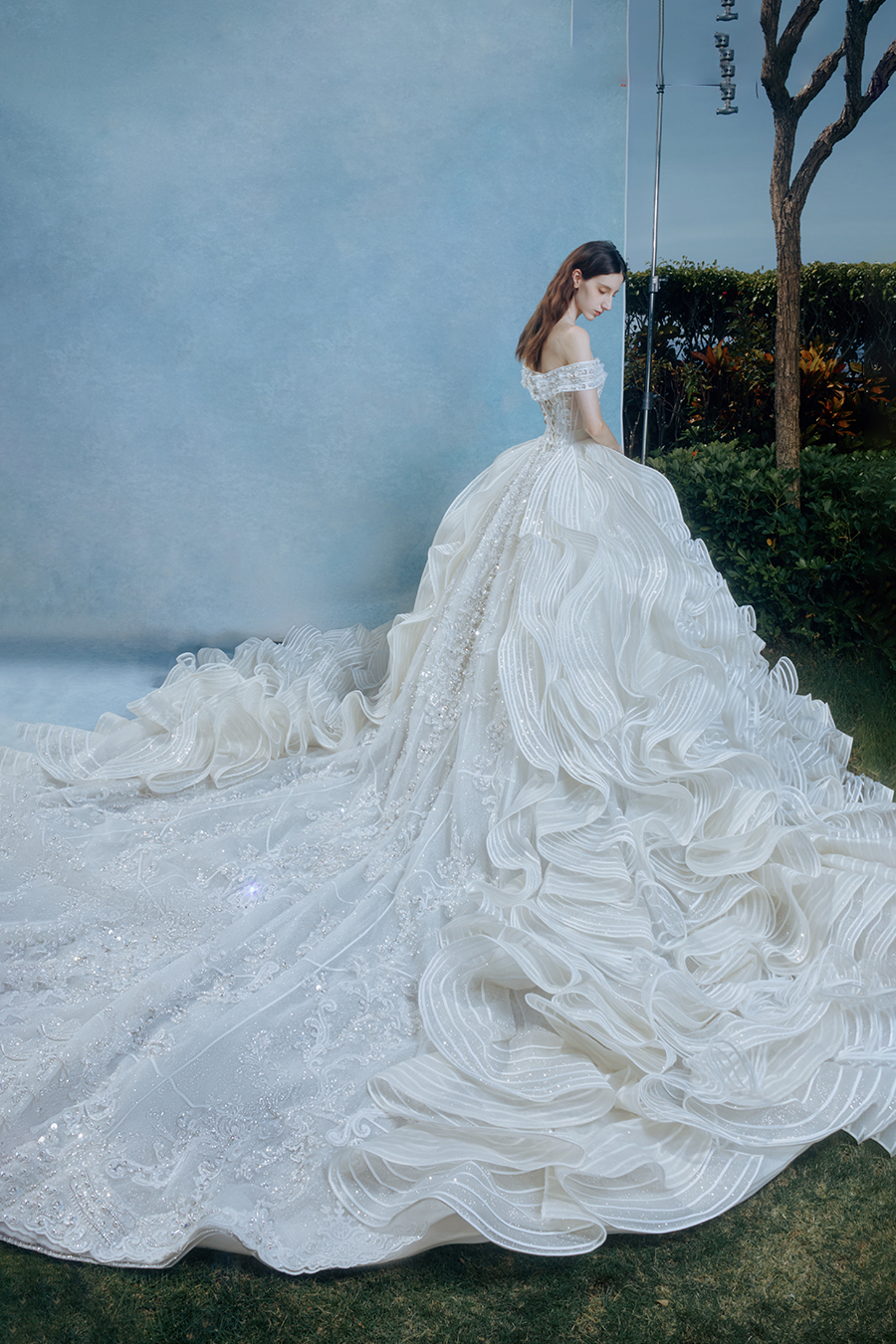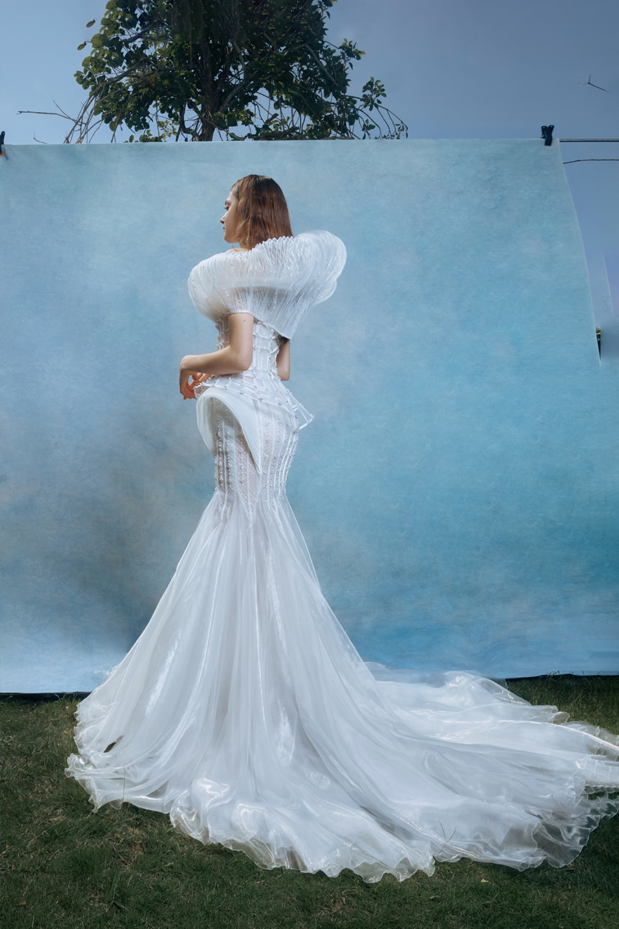 When the cold winter quietly fades away, The Atelier's The R ê ve elegantly launches its 2026 Spring/Summer [Linêa Éternelle] wedding dress collection in the twilight of spring. The Atelier is known for its fusion of multiculturalism and exquisite craftsmanship. Inspired by the architectural structure, the designer transformed the dreamlike light and shadow on the path of tracing light into three-dimensional cutting. Smooth lines resemble the contours of architecture, combining rigidity and softness, just like using light as a pen and dreams as ink, cleverly outlining the ultimate beauty of the body and space. The series selects Türkiye fabric, satin and organza as the main materials. The colors are mainly blue, purple, and gray, blending the deep sky, dreamy romance, and calm earth. The design integrates natural elements, architectural geometric beauty, and light and shadow rhythm, using smooth lines to outline flowers, leaves, and butterflies, and then using embroidery to outline textures and reliefs to shape patterns, allowing natural elements to "grow" along the lines, as if building a dream realm along the trajectory of light. The bride wearing this wedding dress seems to blend with the artistic conception of tracing light and building dreams, becoming the most enchanting scenery in The R ê ve painting.