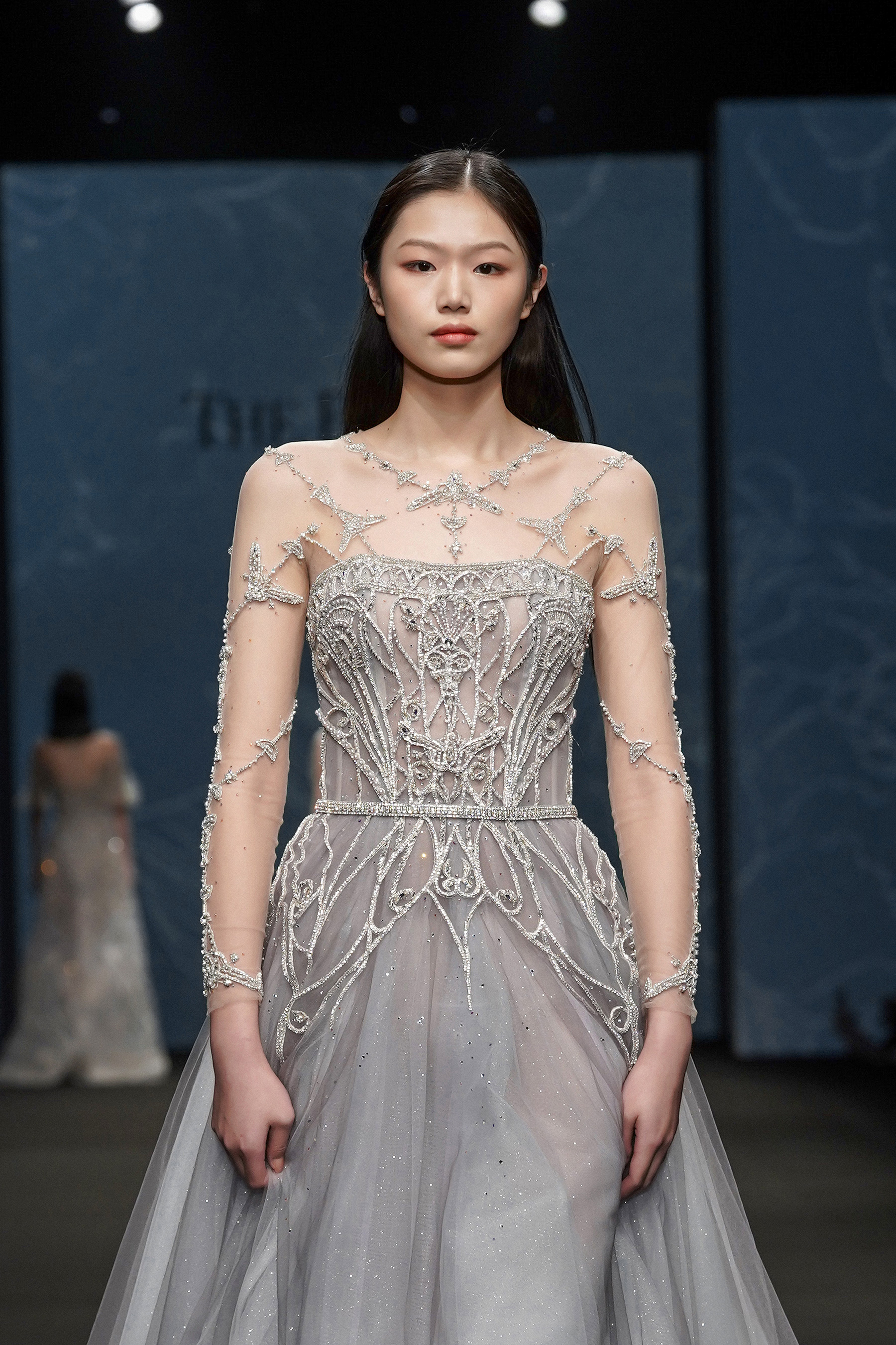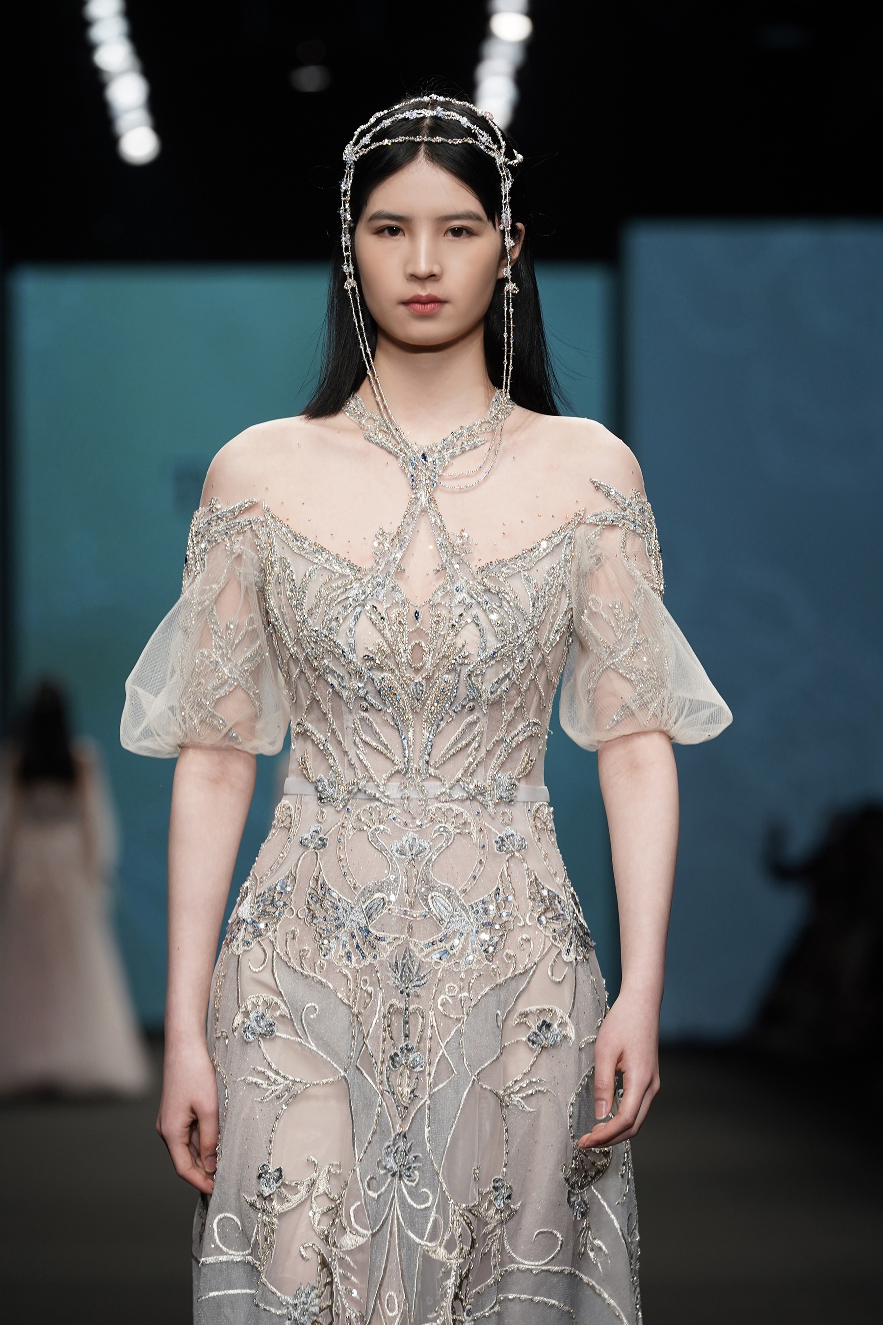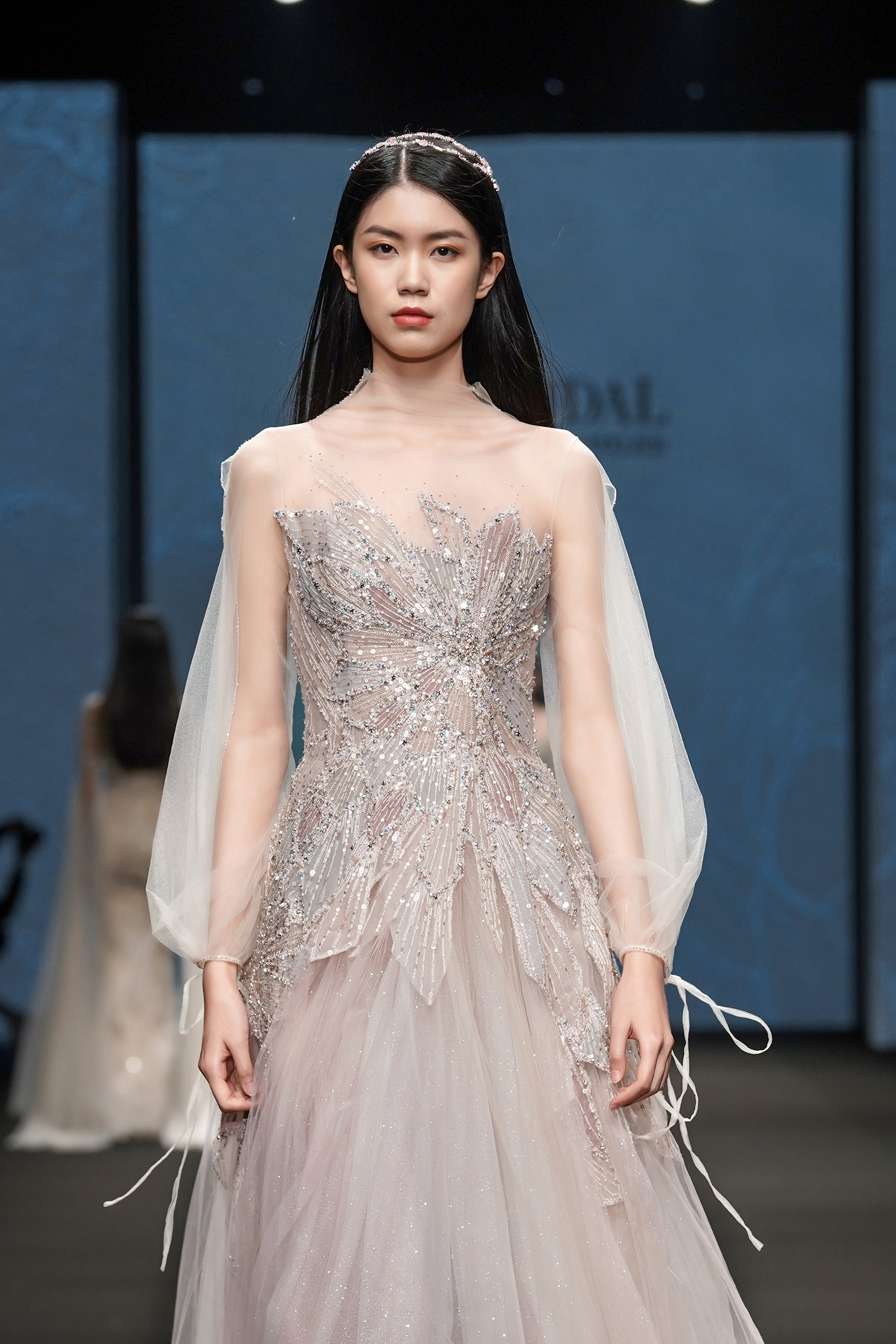 THE ATELIER COUTURE BRIDAL COLLECTION AW 2021 begins with Art Nouveau, where the designer draws inspiration from the works of a range of artists, “Art in nature, Nature in art”. Not limited to the existing traditional decorative patterns, new aesthetic forms are tried to innovate the design. Simple organic lines are used to create lace and embroidery patterns by incorporating natural elements such as the stems of flowers and plants and the wings of insects and birds through the thickness and changes of curves. To a certain extent, "learning from nature" is the inspiration to create this collection and at the same time, the hope for the vitality of recovery after the epidemic.We use the classic imperial ball gown style with luxury handicraft decoration, emphasizing the more delicate naturalistic style, it will be the beautiful symbol through the modern craftsmanship in the design, presenting the dreamy wedding gown that art and romance coexist.
