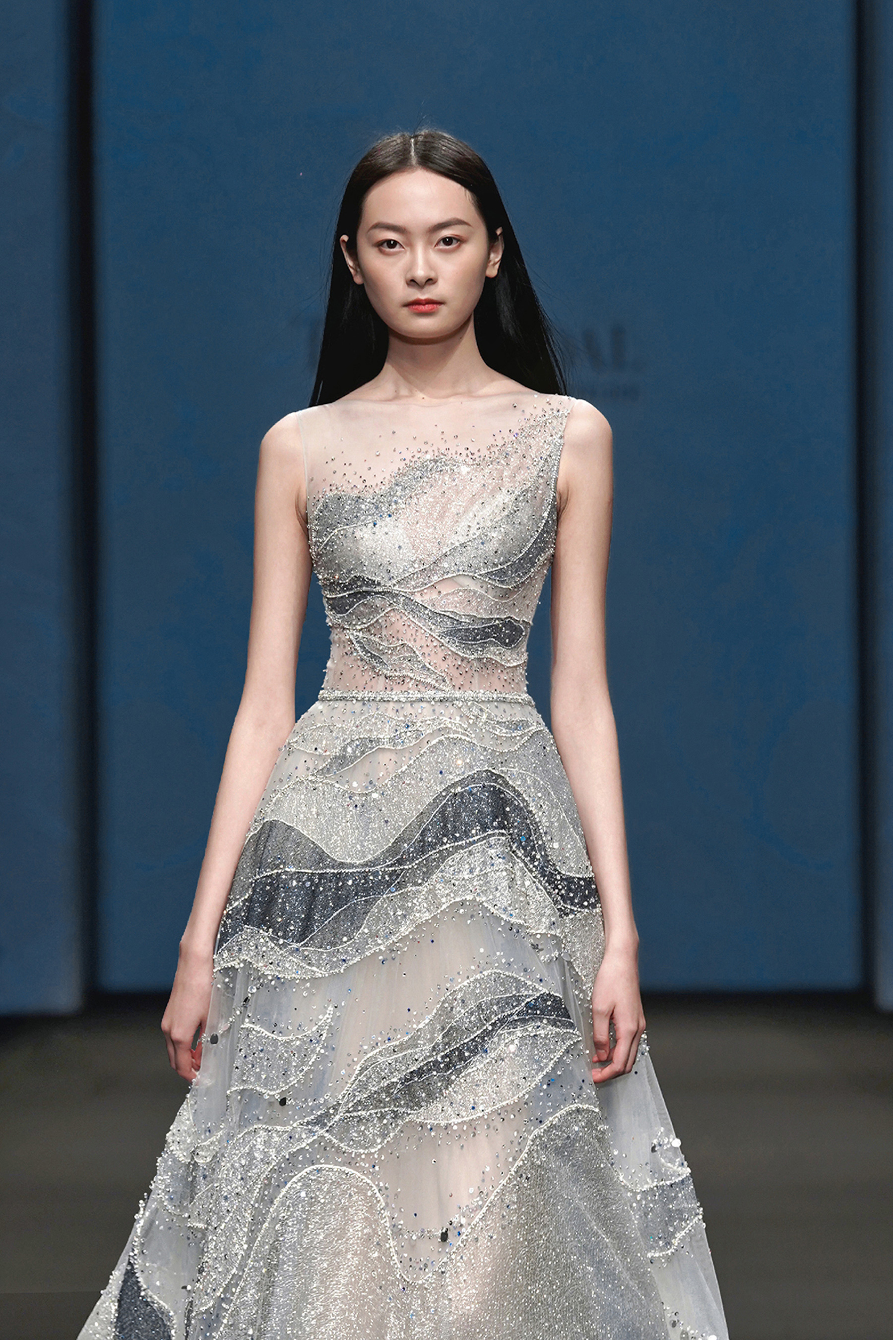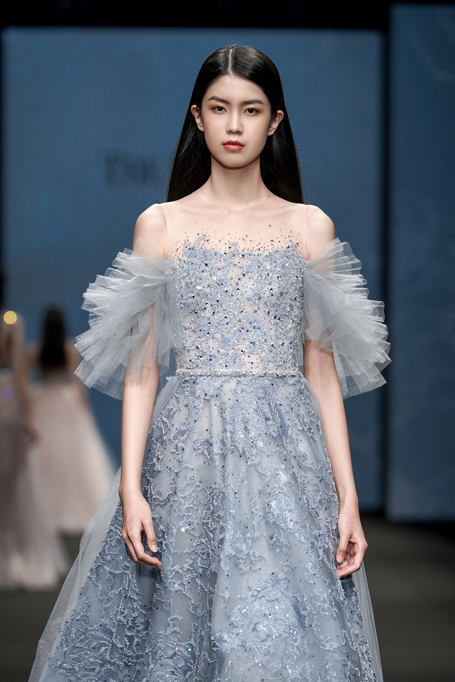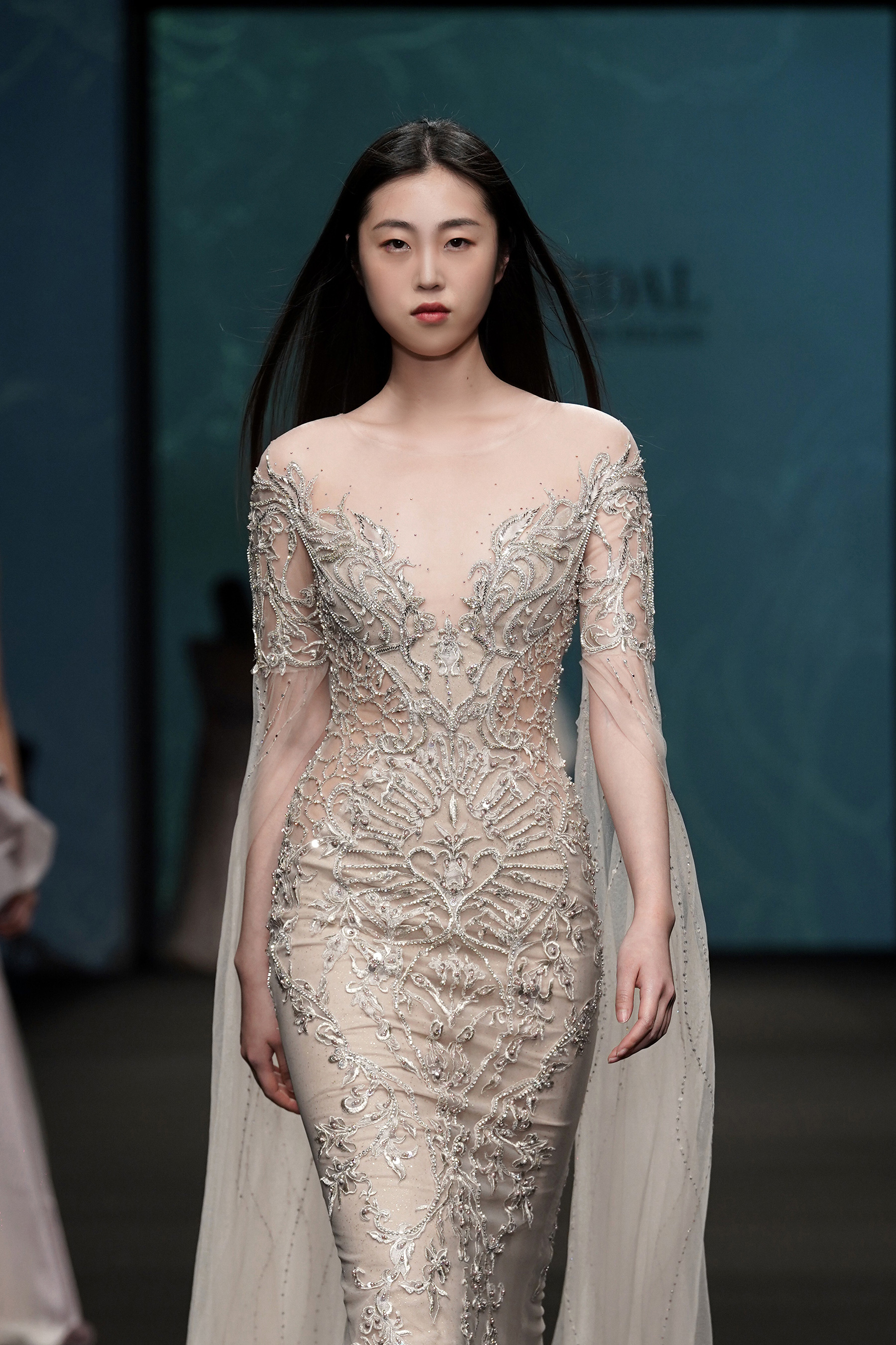 THE ATELIER COUTURE BRIDAL COLLECTION AW 2021 begins with Art Nouveau, where the designer draws inspiration from the works of a range of artists, “Art in nature, Nature in art”. Not limited to the existing traditional decorative patterns, new aesthetic forms are tried to innovate the design. Simple organic lines are used to create lace and embroidery patterns by incorporating natural elements such as the stems of flowers and plants and the wings of insects and birds through the thickness and changes of curves. To a certain extent, "learning from nature" is the inspiration to create this collection and at the same time, the hope for the vitality of recovery after the epidemic.We use the classic imperial ball gown style with luxury handicraft decoration, emphasizing the more delicate naturalistic style, it will be the beautiful symbol through the modern craftsmanship in the design, presenting the dreamy wedding gown that art and romance coexist.