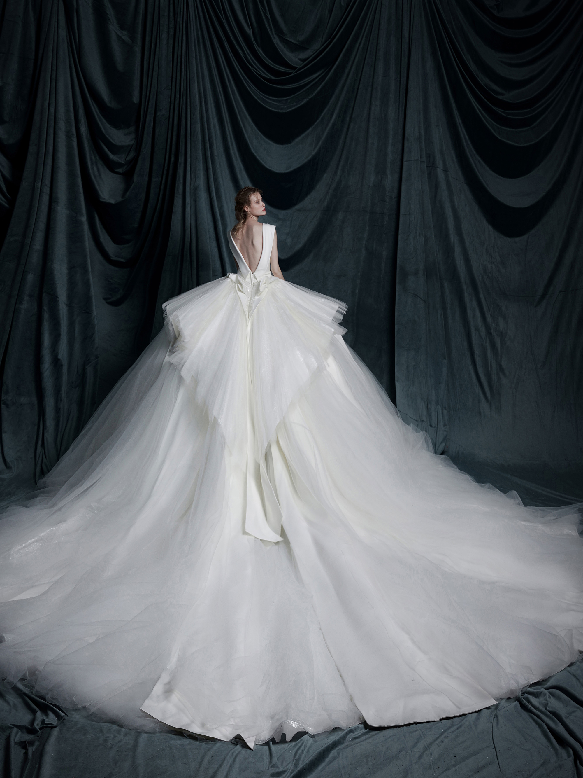 Just let the naughty Parker drip the juice of “Love-in-idleness”. On this misty taste of moonshine night, like a dream, but verisimilitude. And the air was filled with fantastic. Doesn’t love born with innate fantasy?[Shakespeare In Love ] Perfectly shows The Bridal by The Atelier‘s extravagant embellishments and whimsical style, The fabulous wedding gown fitted with fine corset in the light of feminine curves, combining gorgeous train that all eyes are on you like the heroine of the incredible Palace Ball in Shakespeare’s plays. The glorious dresses, featured by various fabrics with different textures and multiple ornaments stand vividly revealed on the ethereal tulle, Performing a magical midsummer romance.