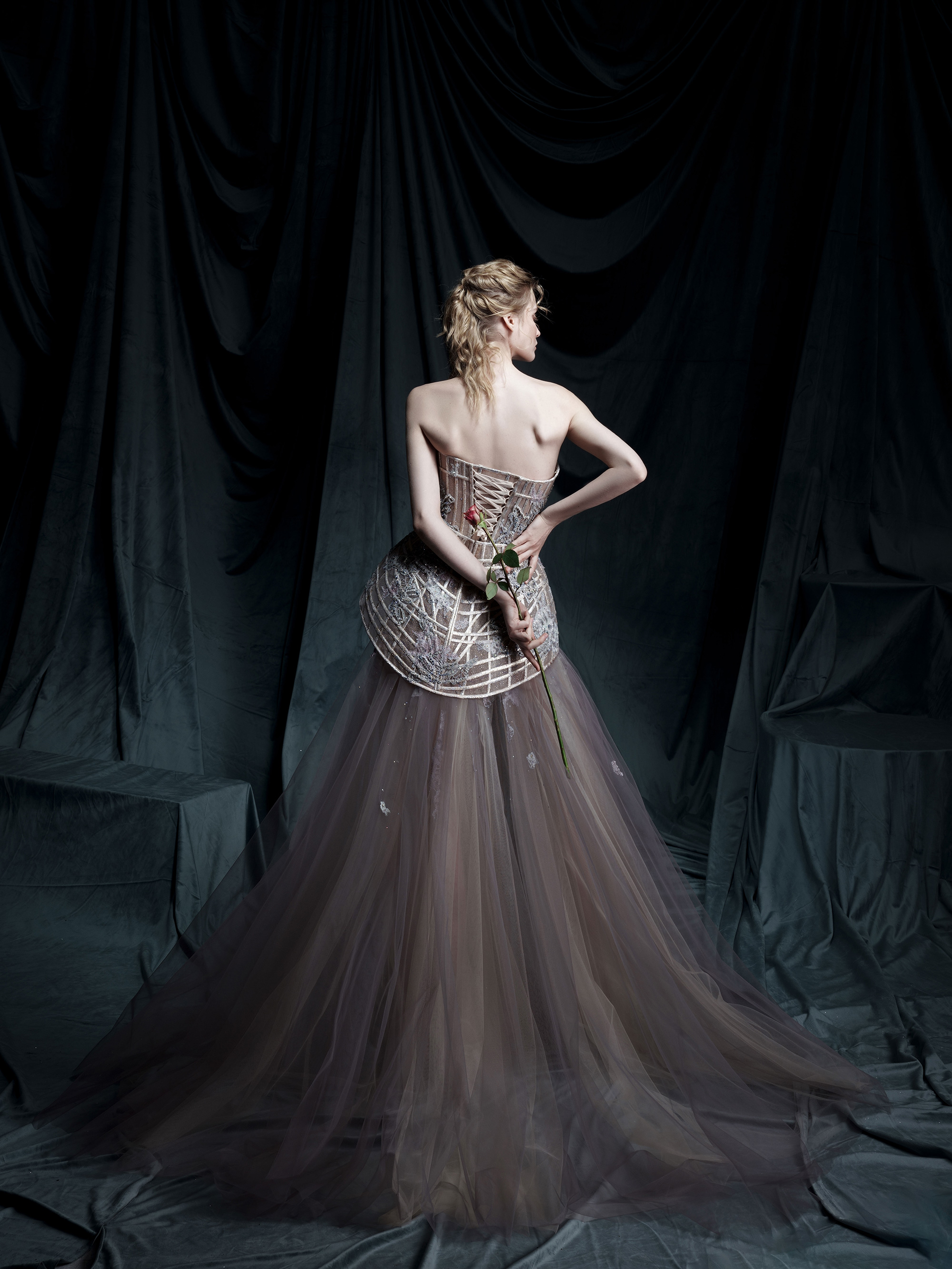Just let the naughty Parker drip the juice of “Love-in-idleness”. On this misty taste of moonshine night, like a dream, but verisimilitude. And the air was filled with fantastic. Doesn’t love born with innate fantasy?[Shakespeare In Love ] Perfectly shows The Bridal by The Atelier‘s extravagant embellishments and whimsical style, The fabulous wedding gown fitted with fine corset in the light of feminine curves, combining gorgeous train that all eyes are on you like the heroine of the incredible Palace Ball in Shakespeare’s plays. The glorious dresses, featured by various fabrics with different textures and multiple ornaments stand vividly revealed on the ethereal tulle, Performing a magical midsummer romance.